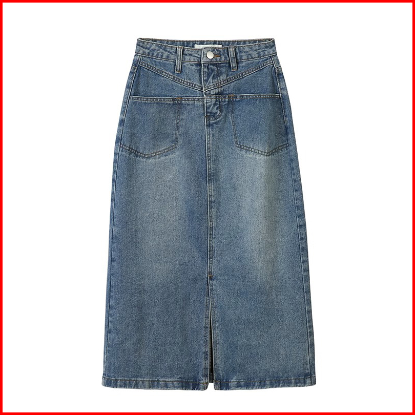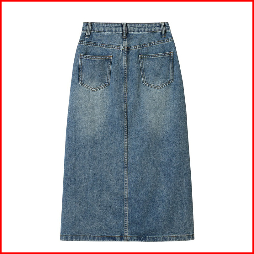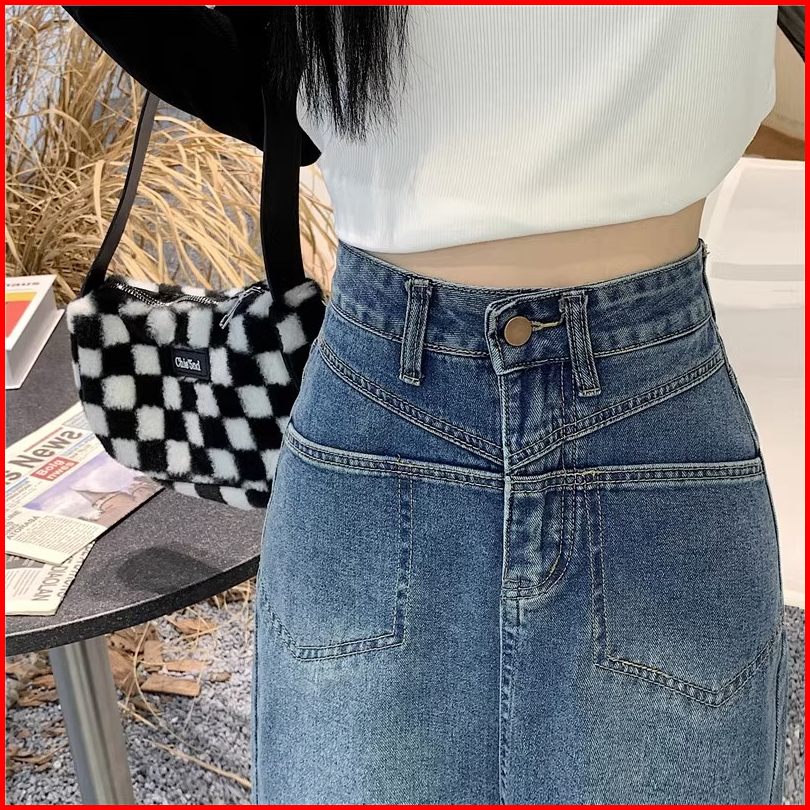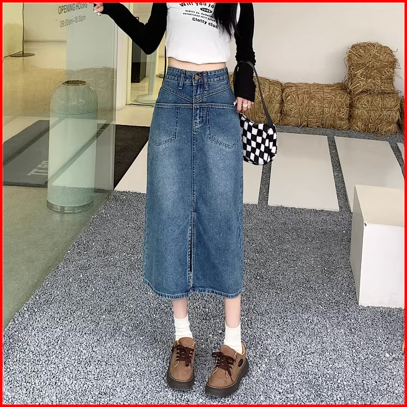 Korea Kekinian Highwaist A-line Rok Jeans Wantia Midi Rok Terbaru