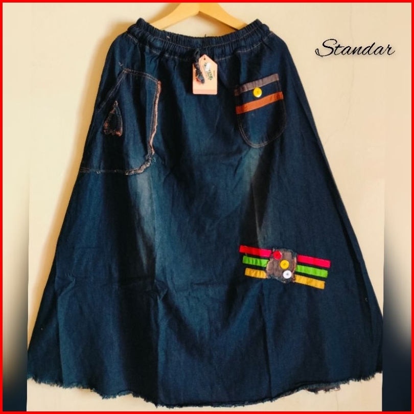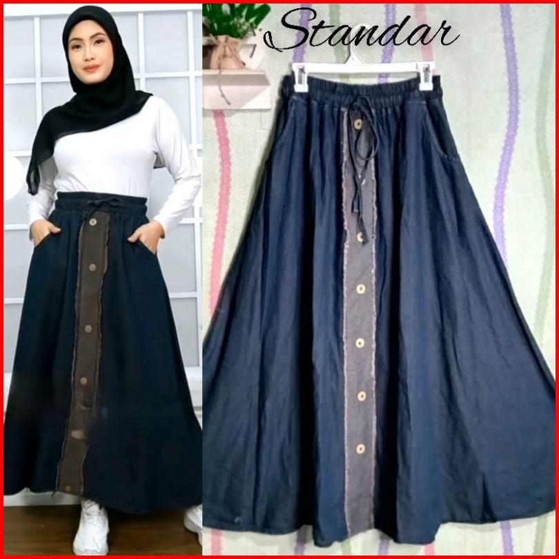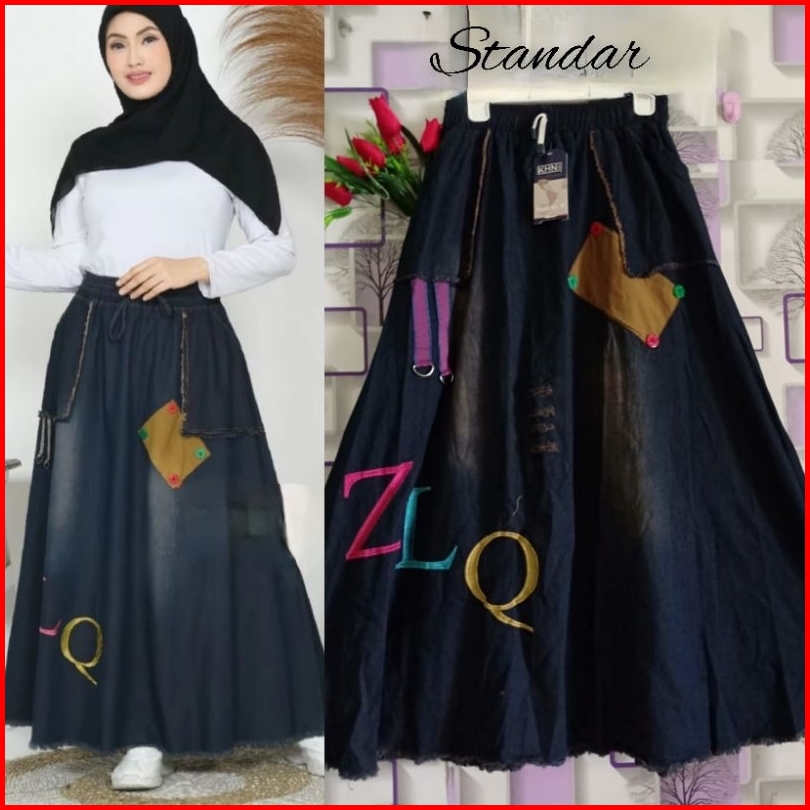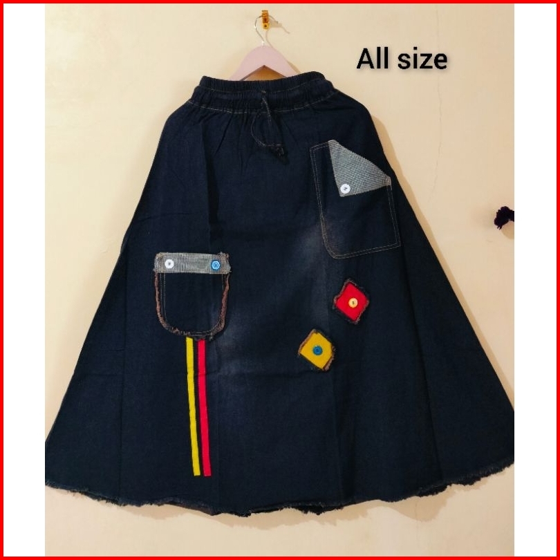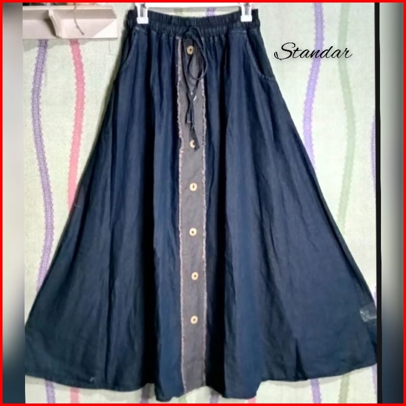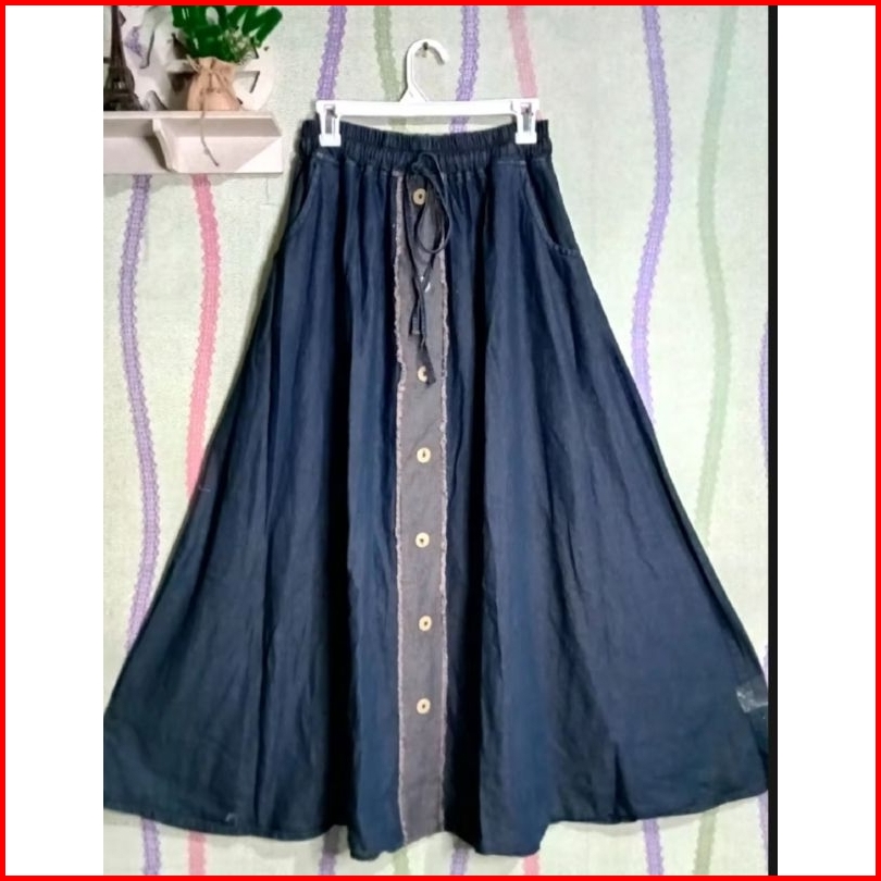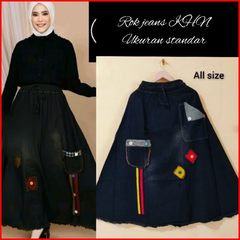 Rok Jeans Panjang Khn Klok Lebar Hitam All Size Standar