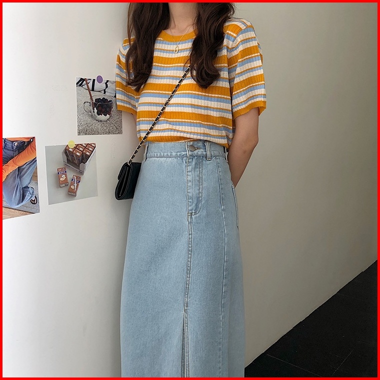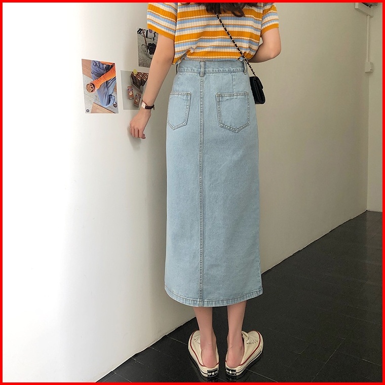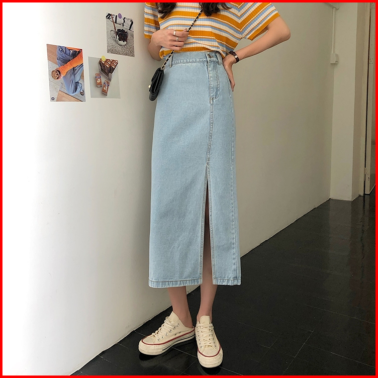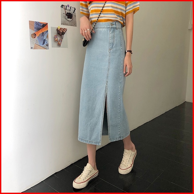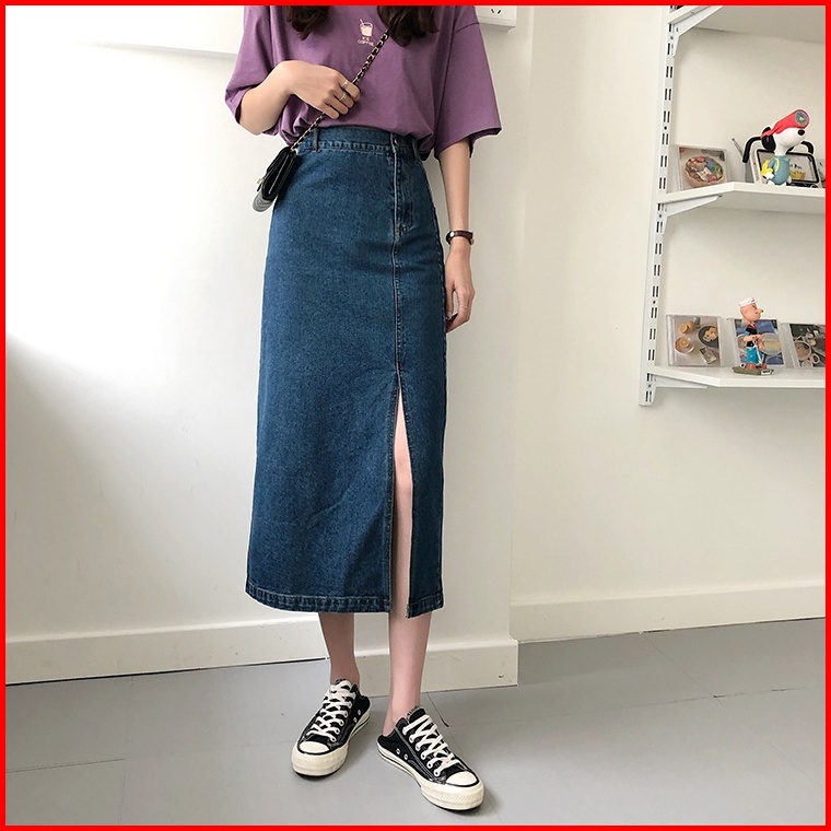 Rok Dress A-line Skirt Rok Panjang Denim A-line Skirt Korean Style Midi Slit