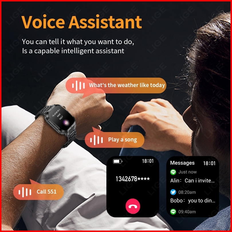 Lige Jam Tangan Pintar Pria Asli 100 Olahraga Ip68 Tahan Air Panggilan Bluetooth Deteksi Denyut Jantung Jam Tangan Pinta