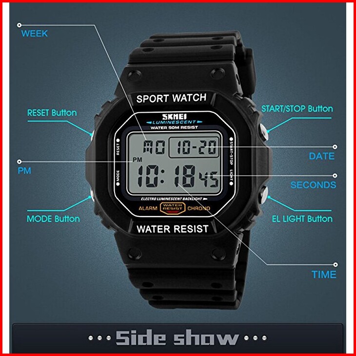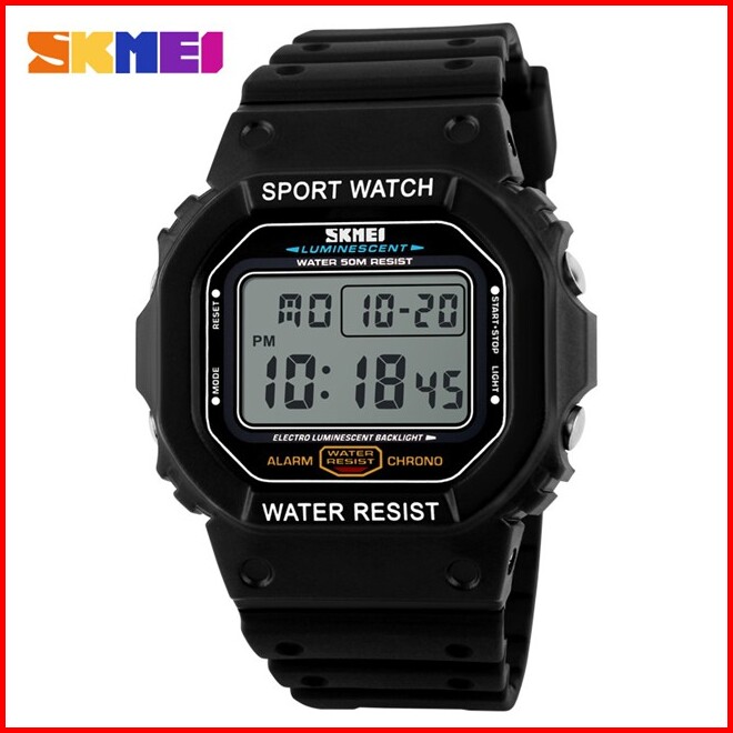 Jam Tangan Pria Digital Skmei 1134 Bk White Water Resistant 50m