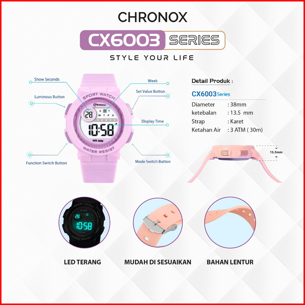 Chrnx By Chronox Jam Tangan Digital Unisex Pria Wanita - Cx6003