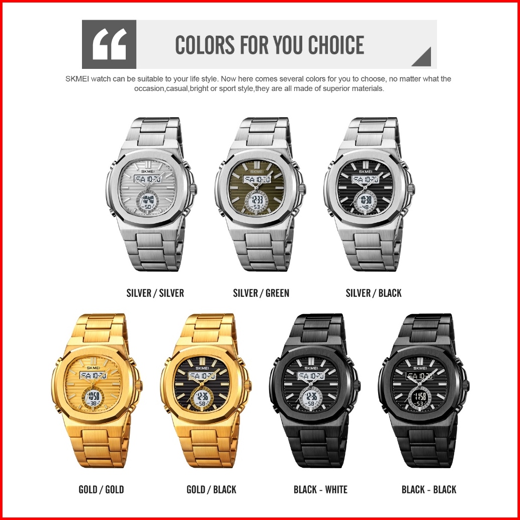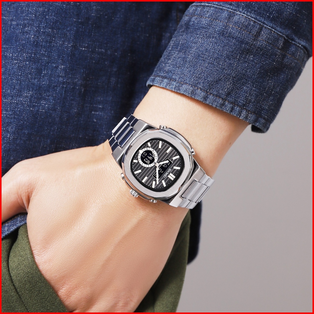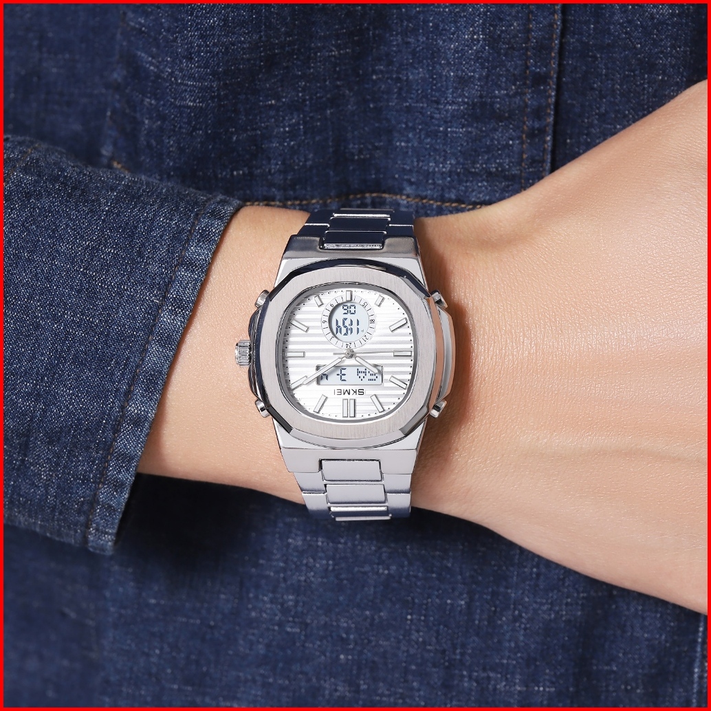 Skmei 2279 Jam Tangan Pria Digital Analog Watch Tali Stainless Rantai Anti Air 3 Bar Mgos