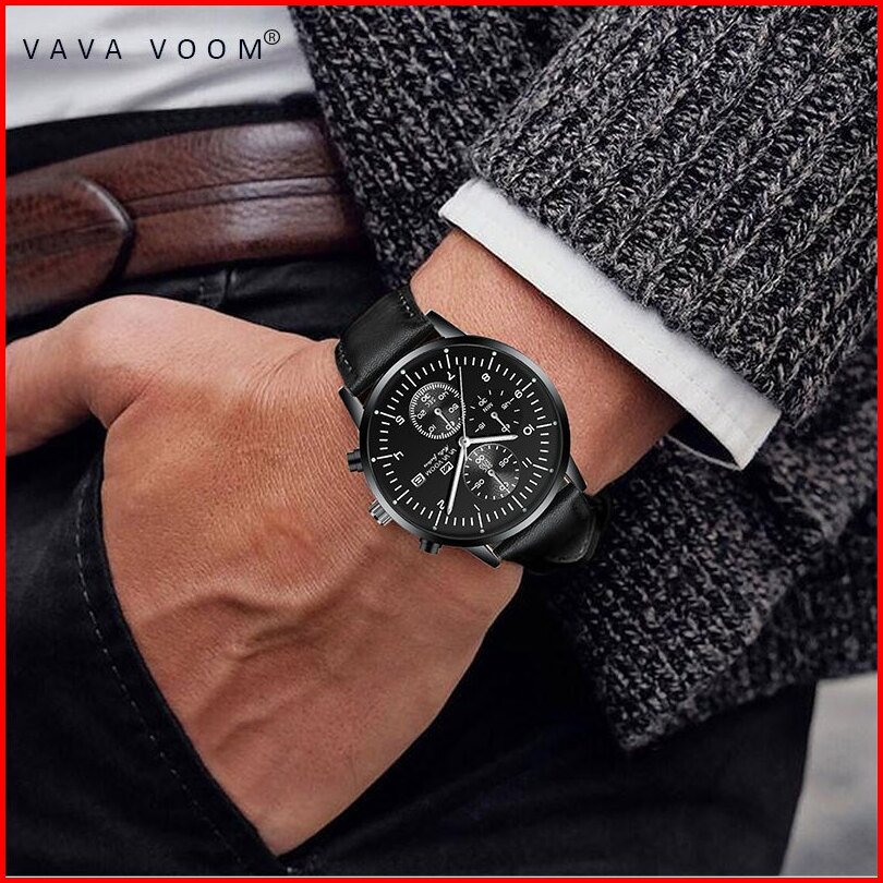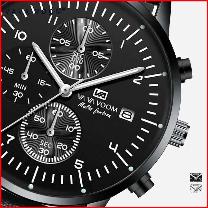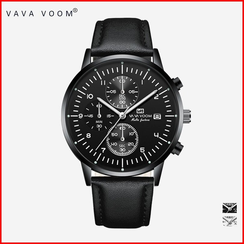 Vavavoom Jam Tangan Pria 100 Original Chrono Aktif Sporty Kulit Tahan Air Cowok Kronograf Luminous Quartz Analog Tanggal