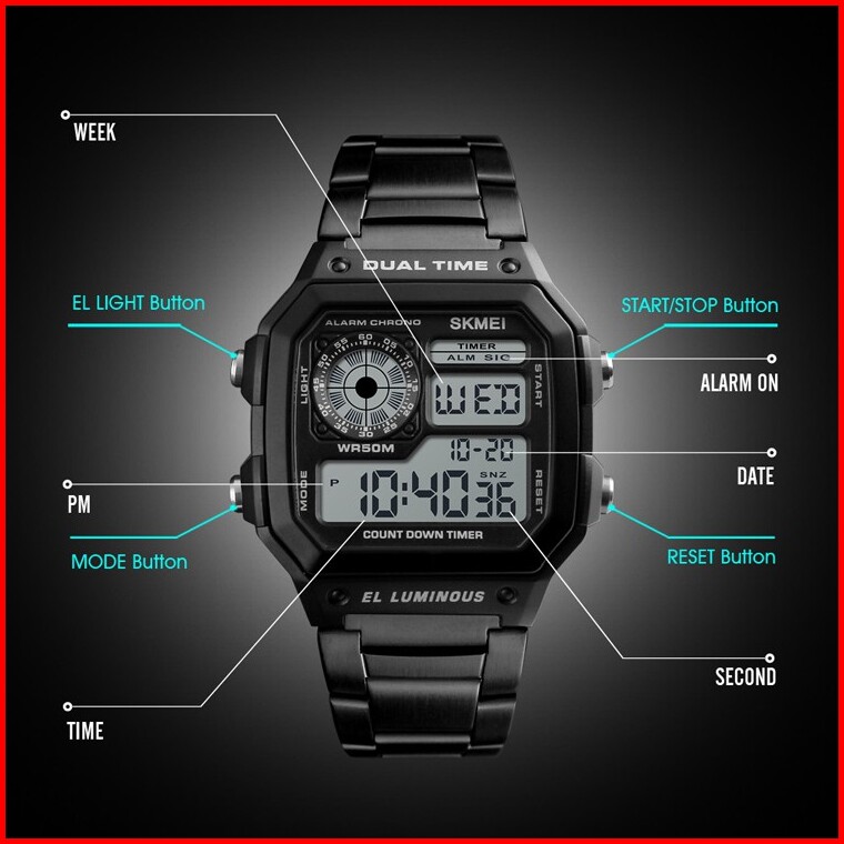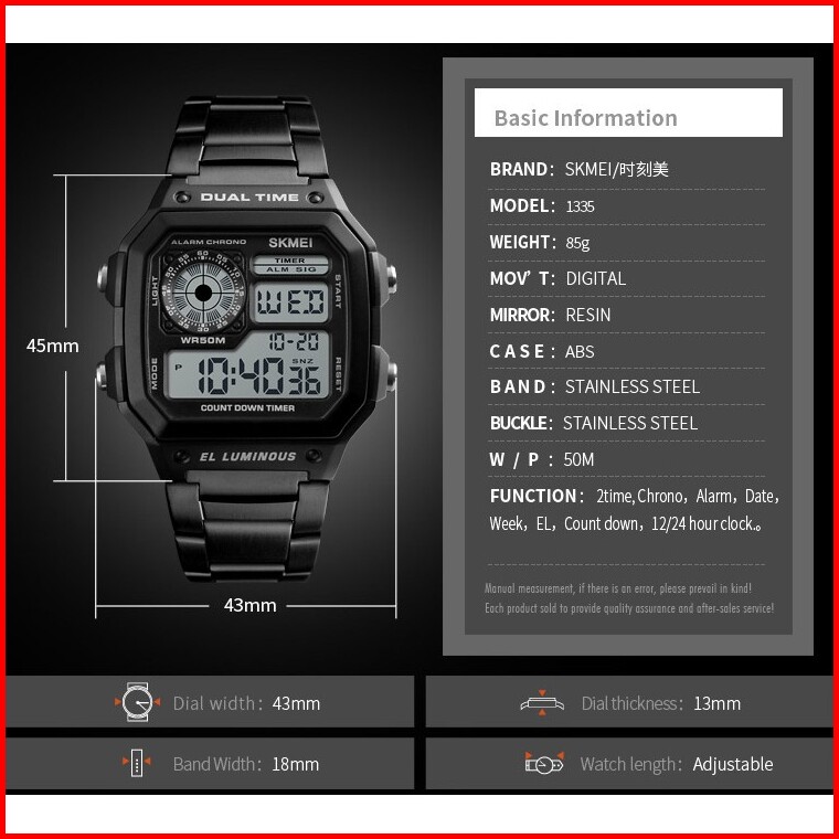 Jam Tangan Pria Digital Skmei 1335 Black Water Resistant 50m