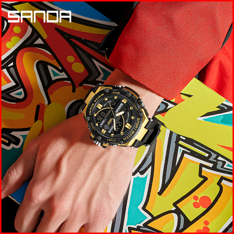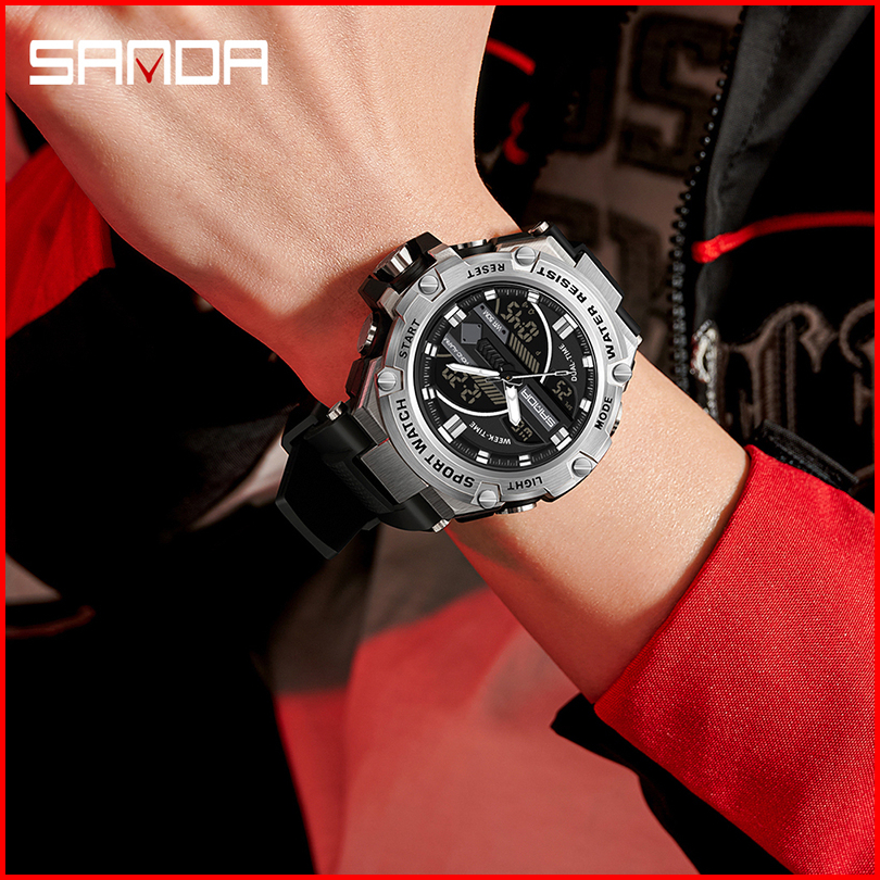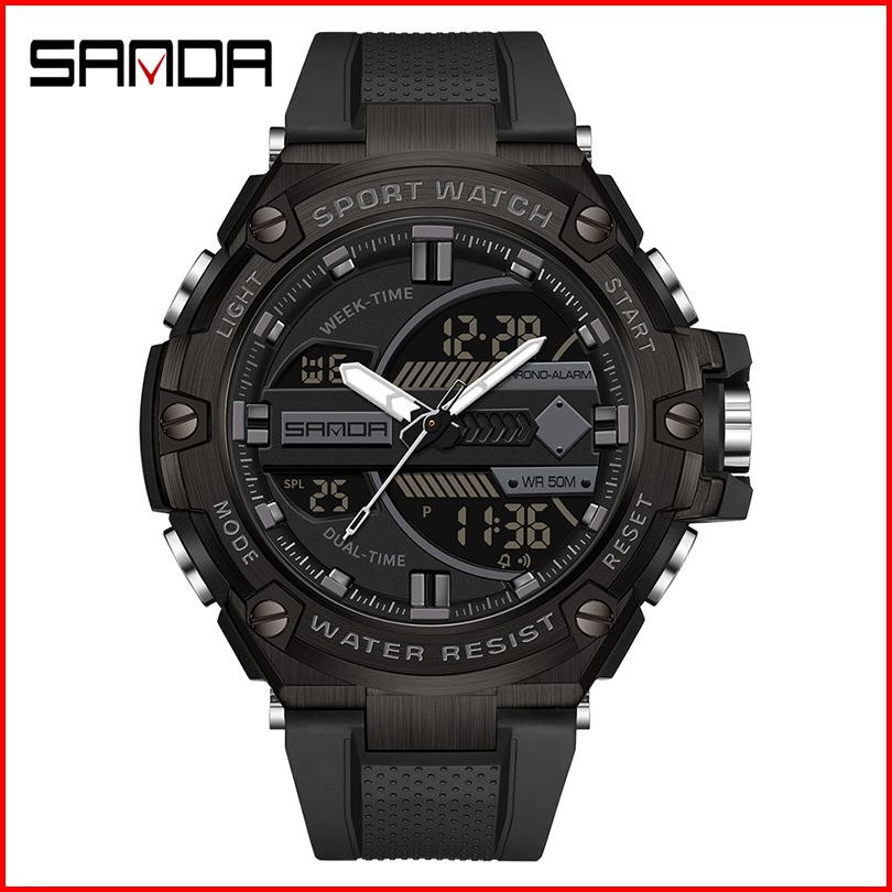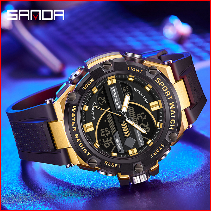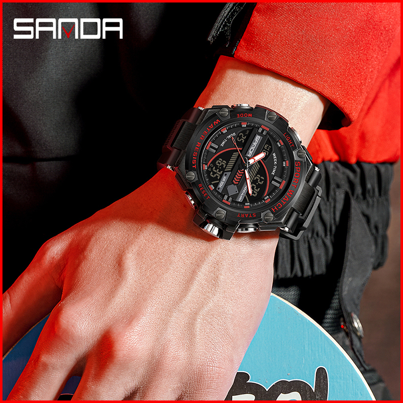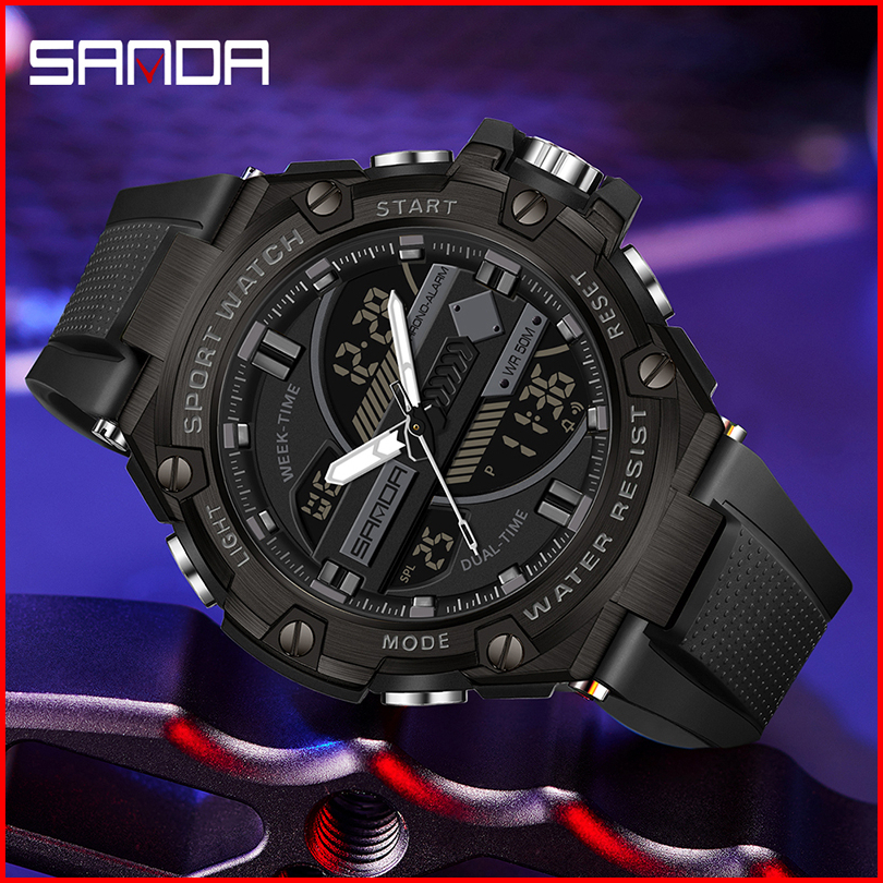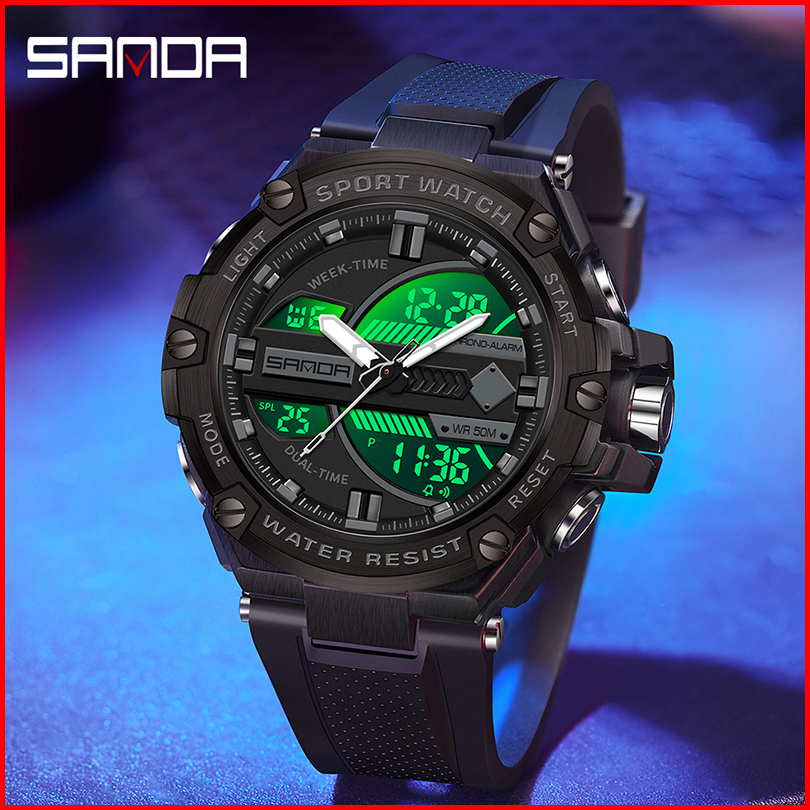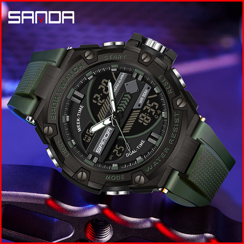 Sanda 3185 Jam Tangan Pria Digital Analog Sport El Backlight Tali Rubber Anti Air Currenos