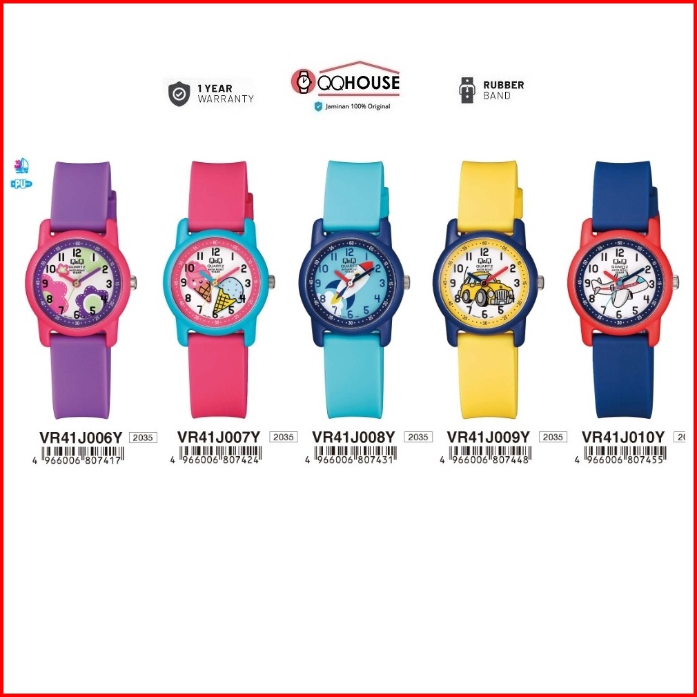 Q Q Qnq Qq Vr41 Vr41j Vr41j006 - 010 Vr41j006y - 010y Analog Kids Watch Rubber Band Jam Tangan Anak Tali Karet