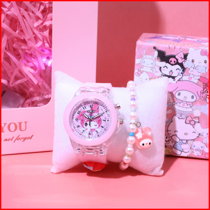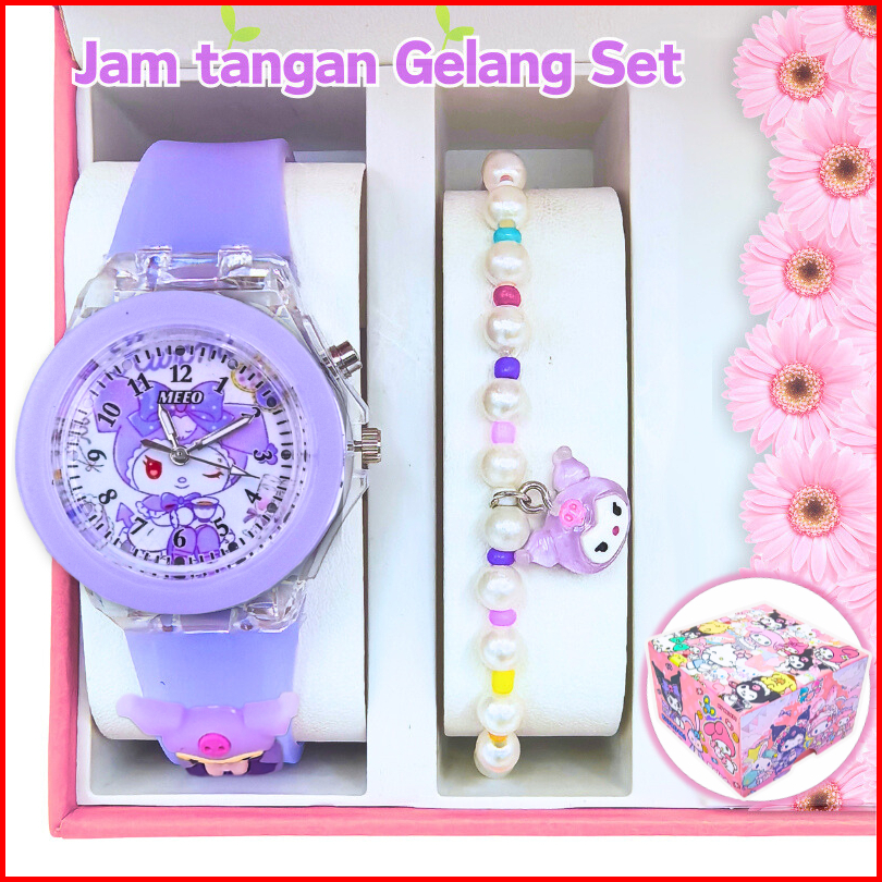 Set Gelang Jam Tangan Anak Dan Gadis Tk Luminous Watch Hadiah Lena Belle Flashing Light Anak-anak Elektronik Jam Tangan
