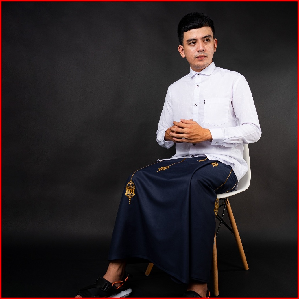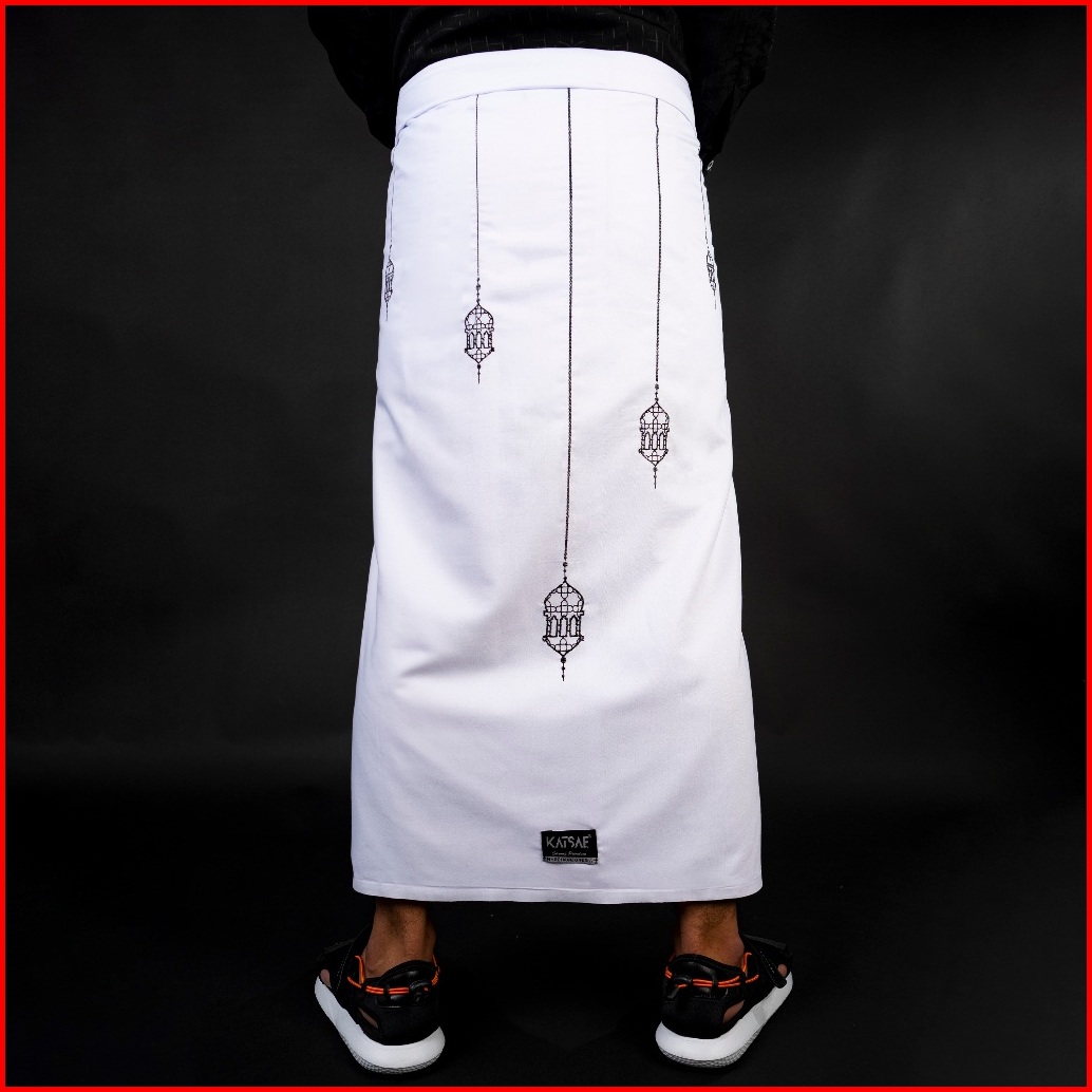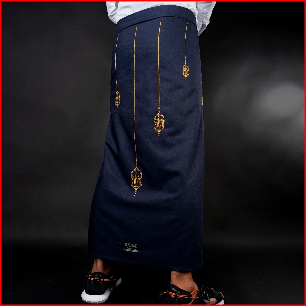 Katsae Sarung Bordir Motif Lentera Embroidery Timbul Sarung Pria Dewasa Sarung Sholat 100 Bordir Asli Warna Navy Putih H