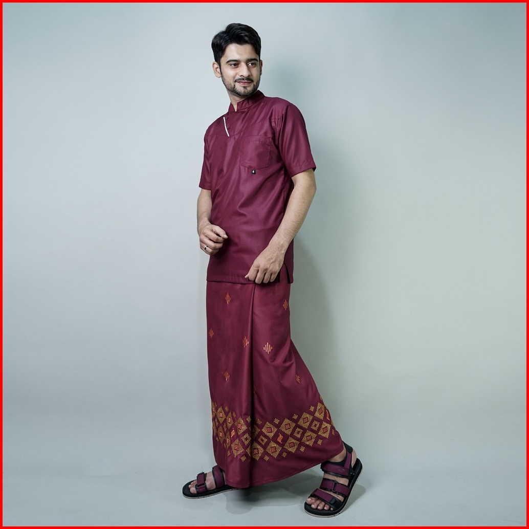 Katsae - Sarung Bordir Motif Sunan Bordir Timbul Sarung Pria Dewasa Warna Msroon Sarung Sholat 100 Bordir