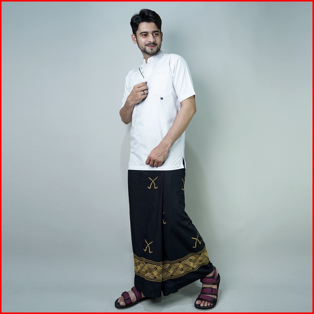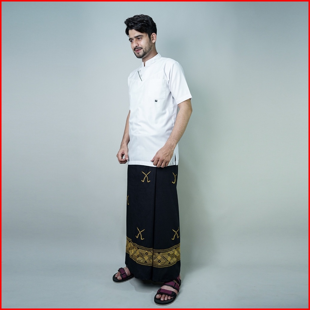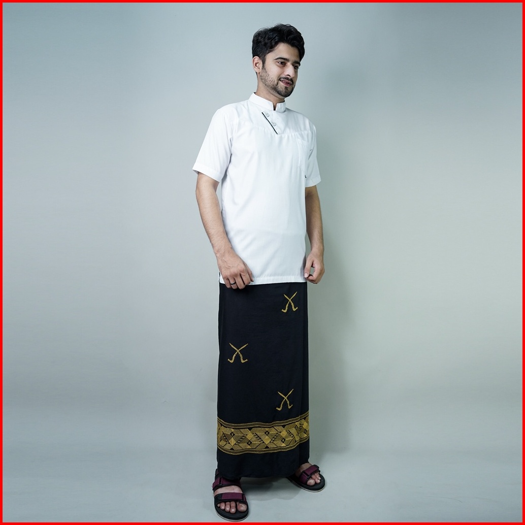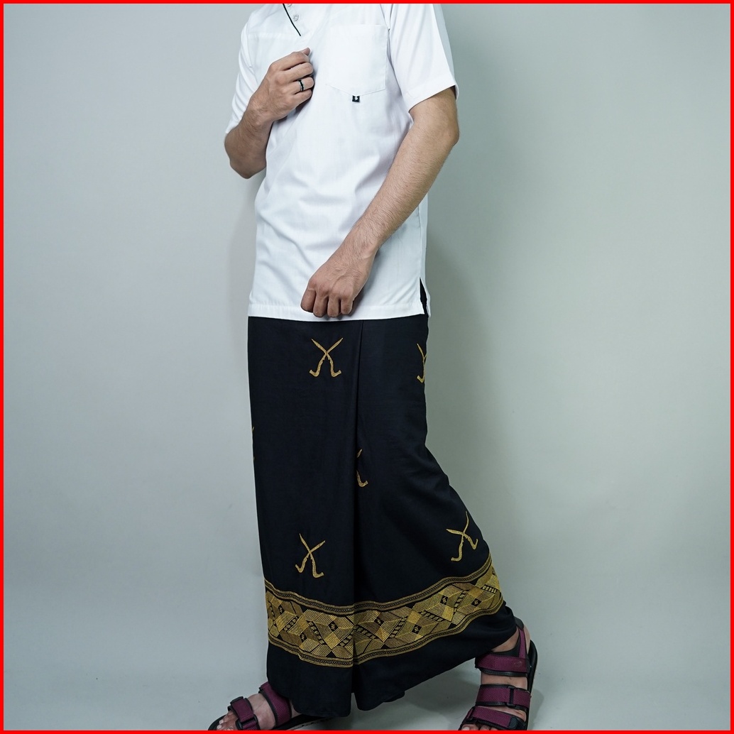 Katsae - Sarung Bordir Motif Rencongg Bordir Timbul Sarung Pria Dewasa Warna Hitam Sarung Sholat 100 Bordir