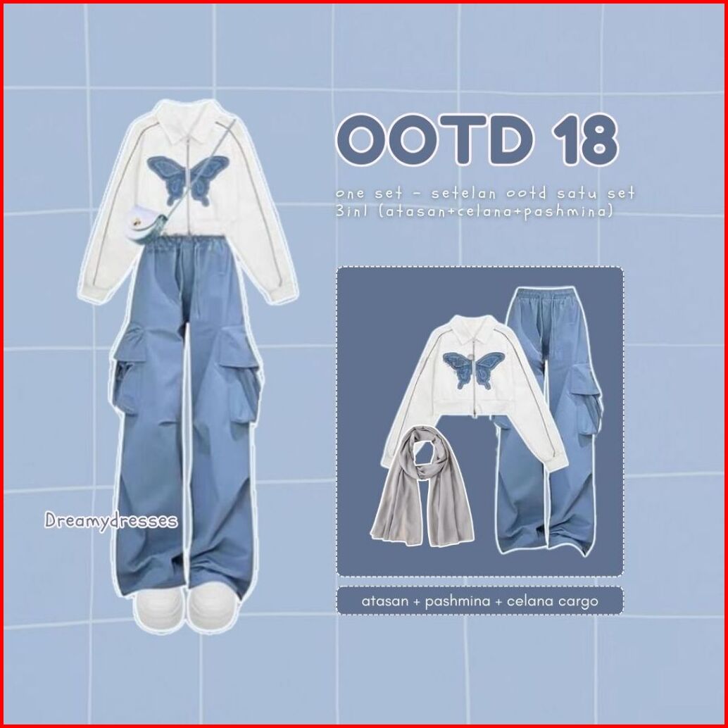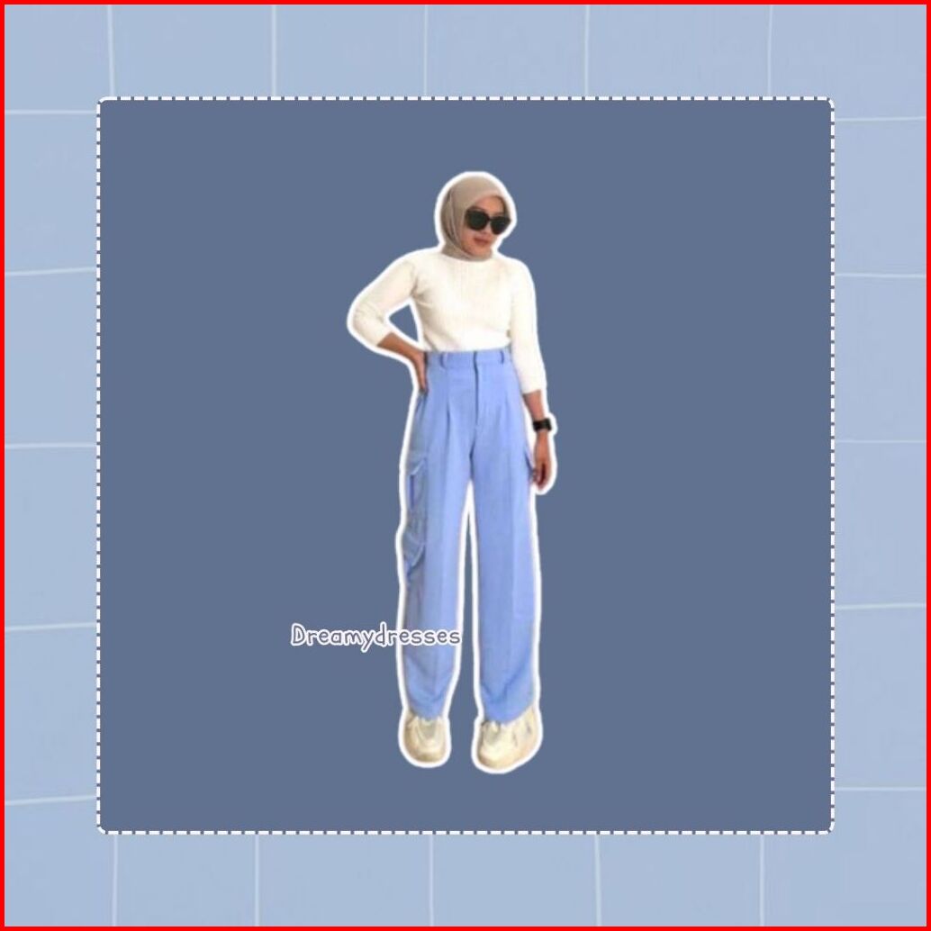 3in1 Set 18 - One Set Korean Style Hoodie Pashmina Ceruty Celana Cargo Felix Biru Setelan Wanita Outfit Kekinian Jennie