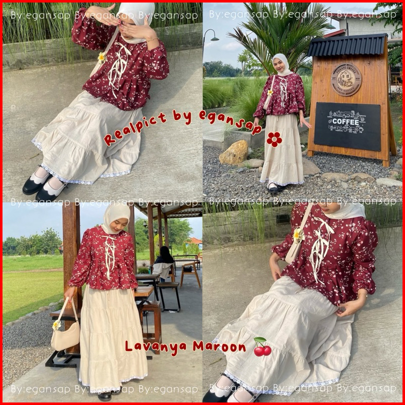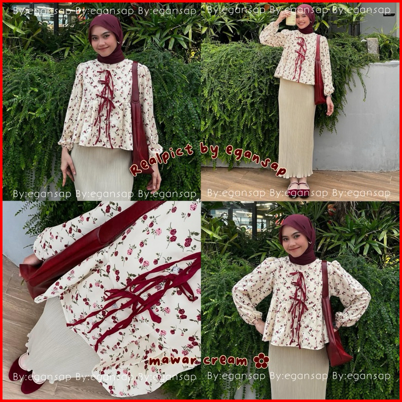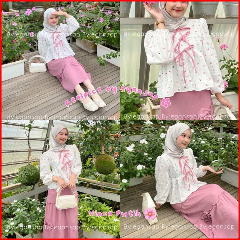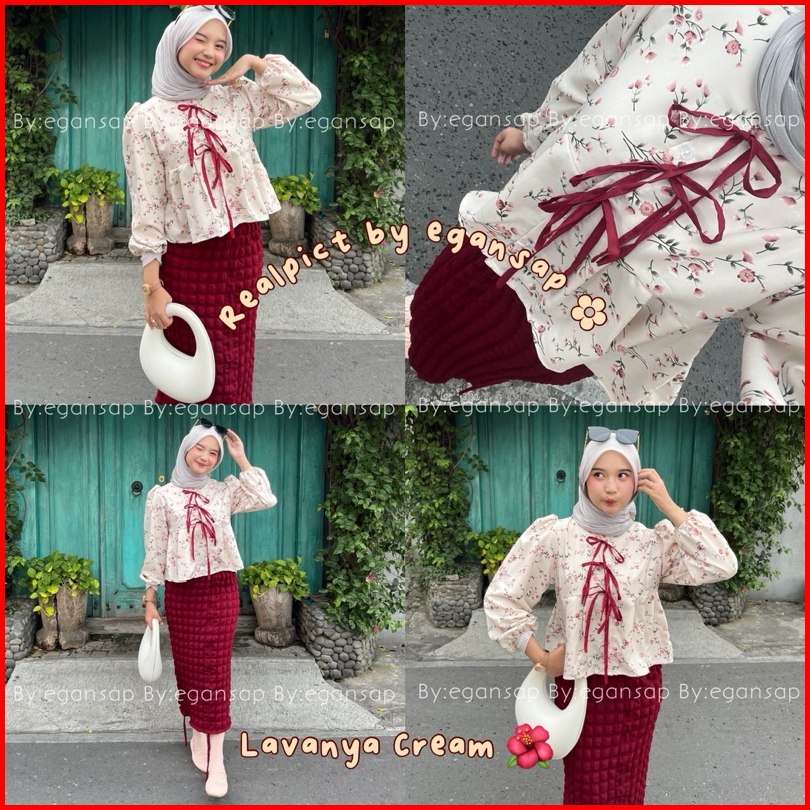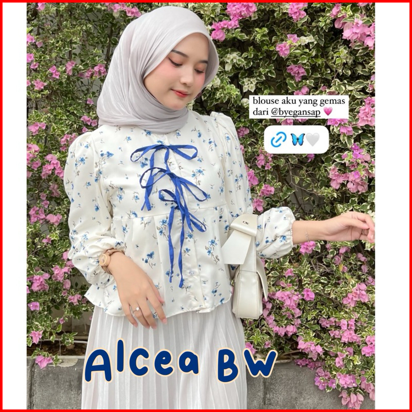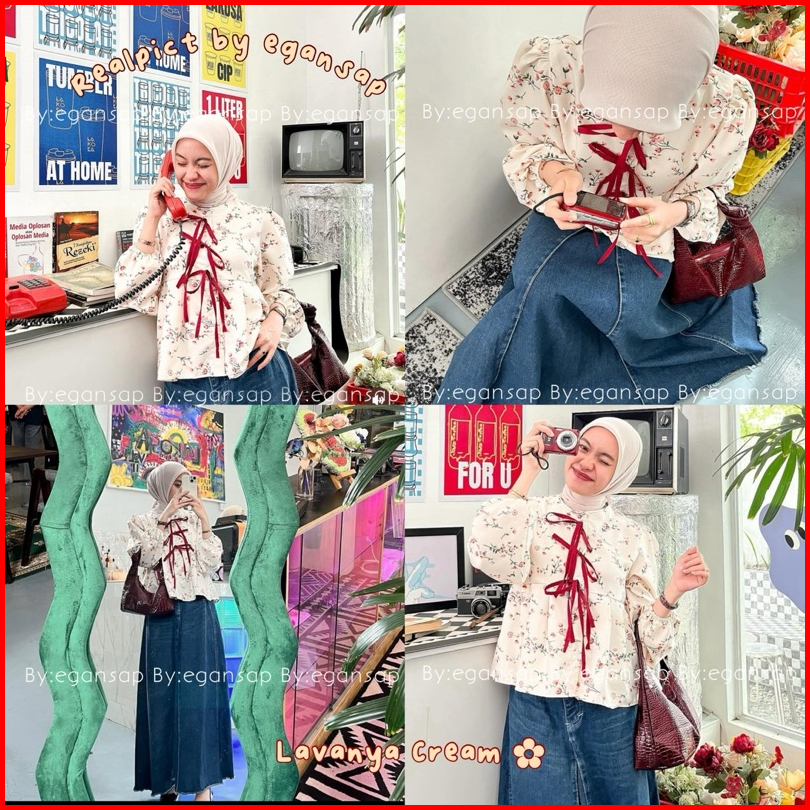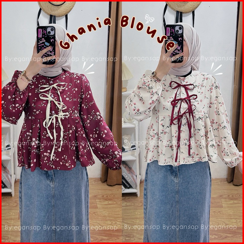 Egansap Ghania Blouse Couquette Ribbon Pita Motif Crop Terbaru Atasan Wanita Korean Style