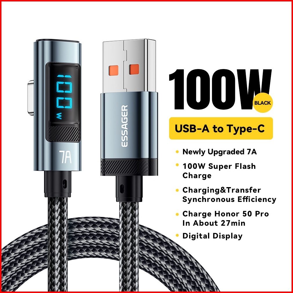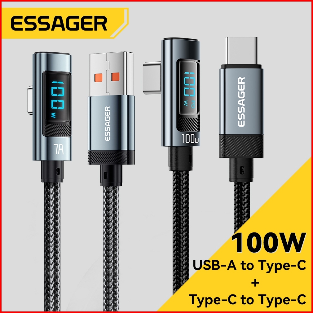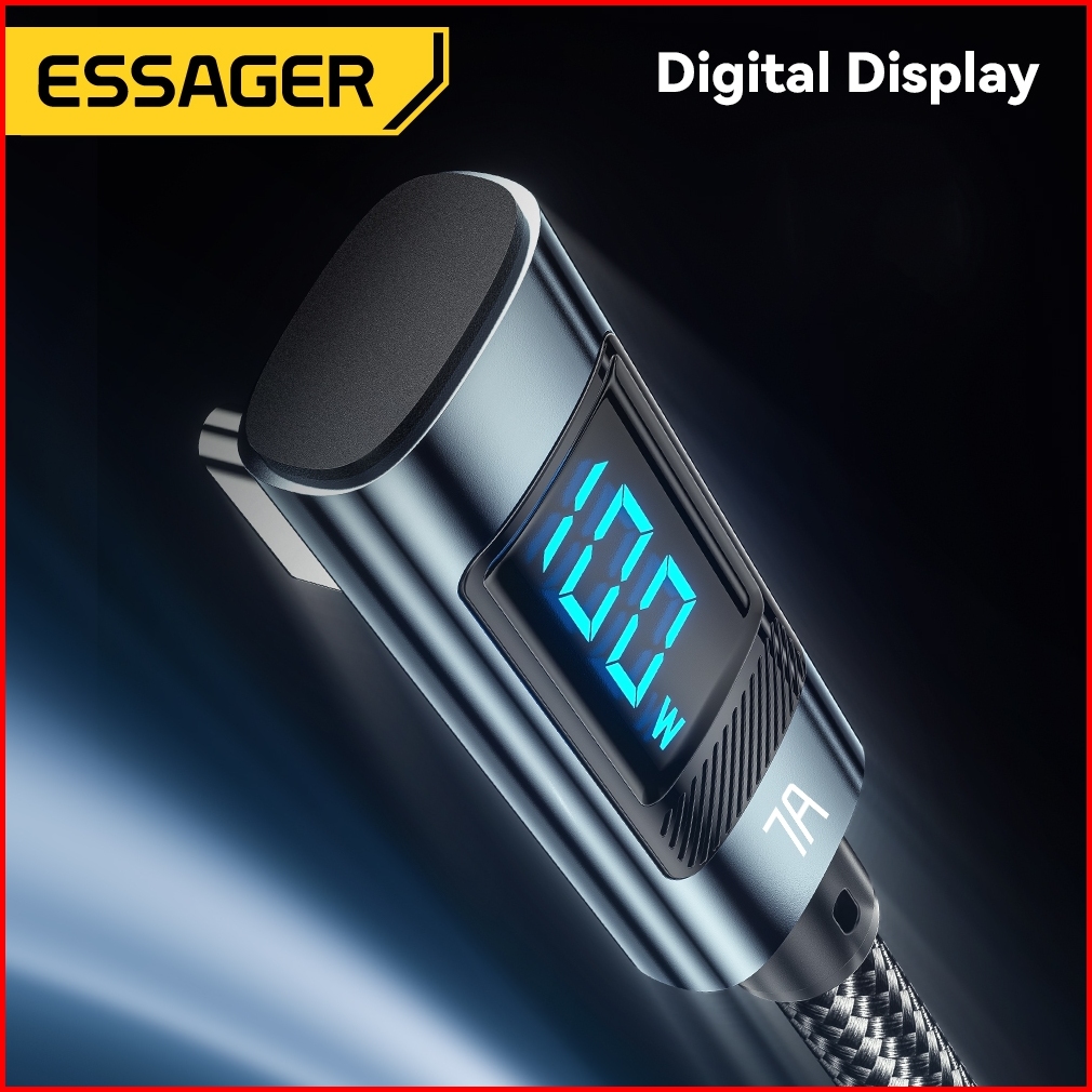 Essager Kabel Data Pengisian Cepat Siku 7a 100w Dengan Tampilan Daya Usb Ke Tipe C Tipe C Ke Tipe C