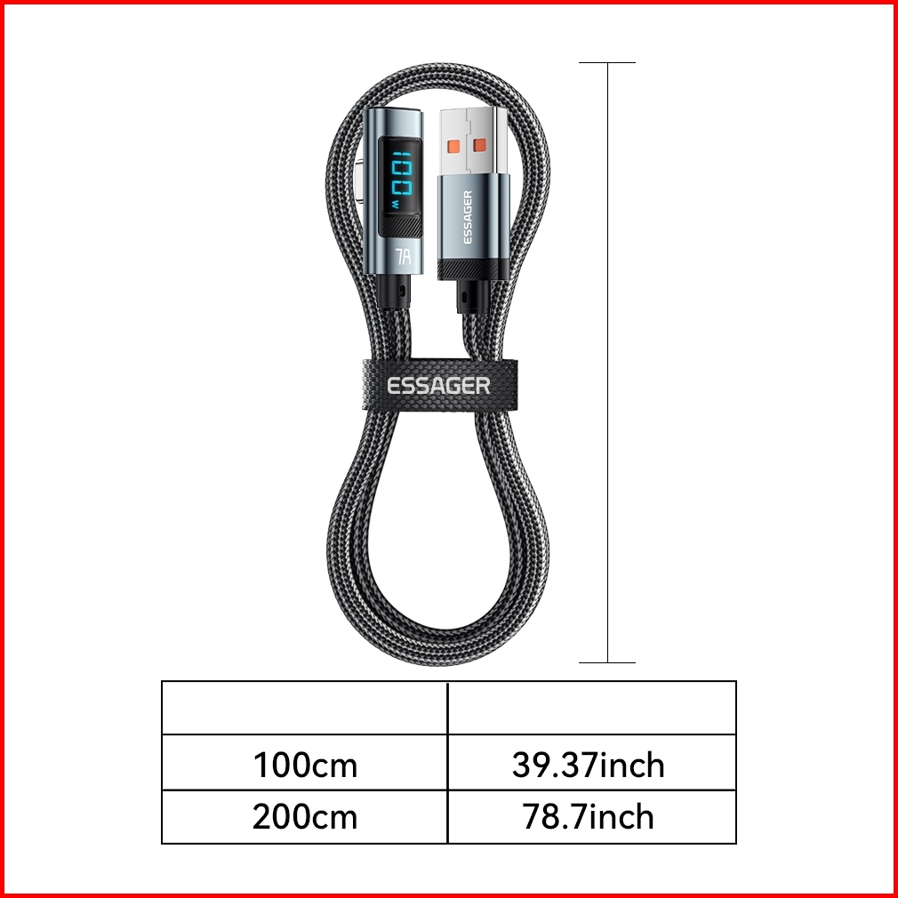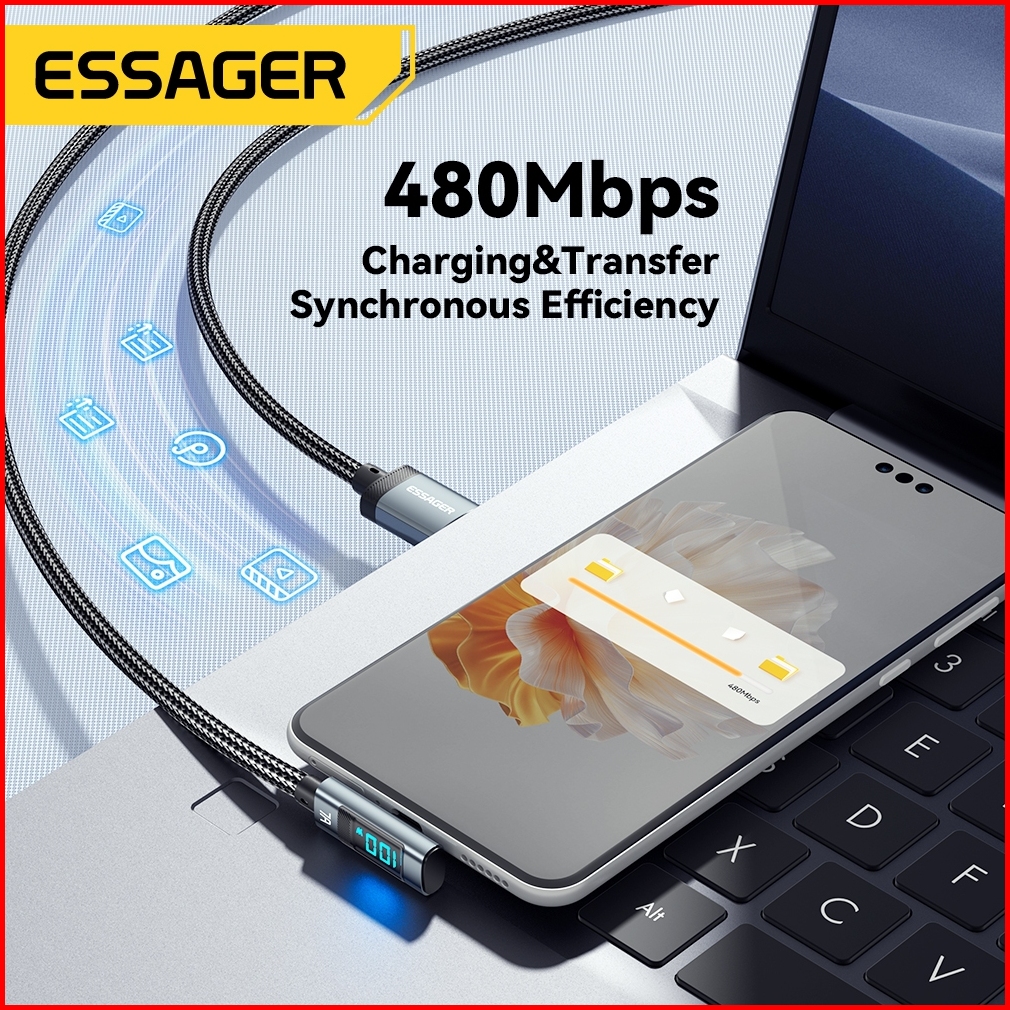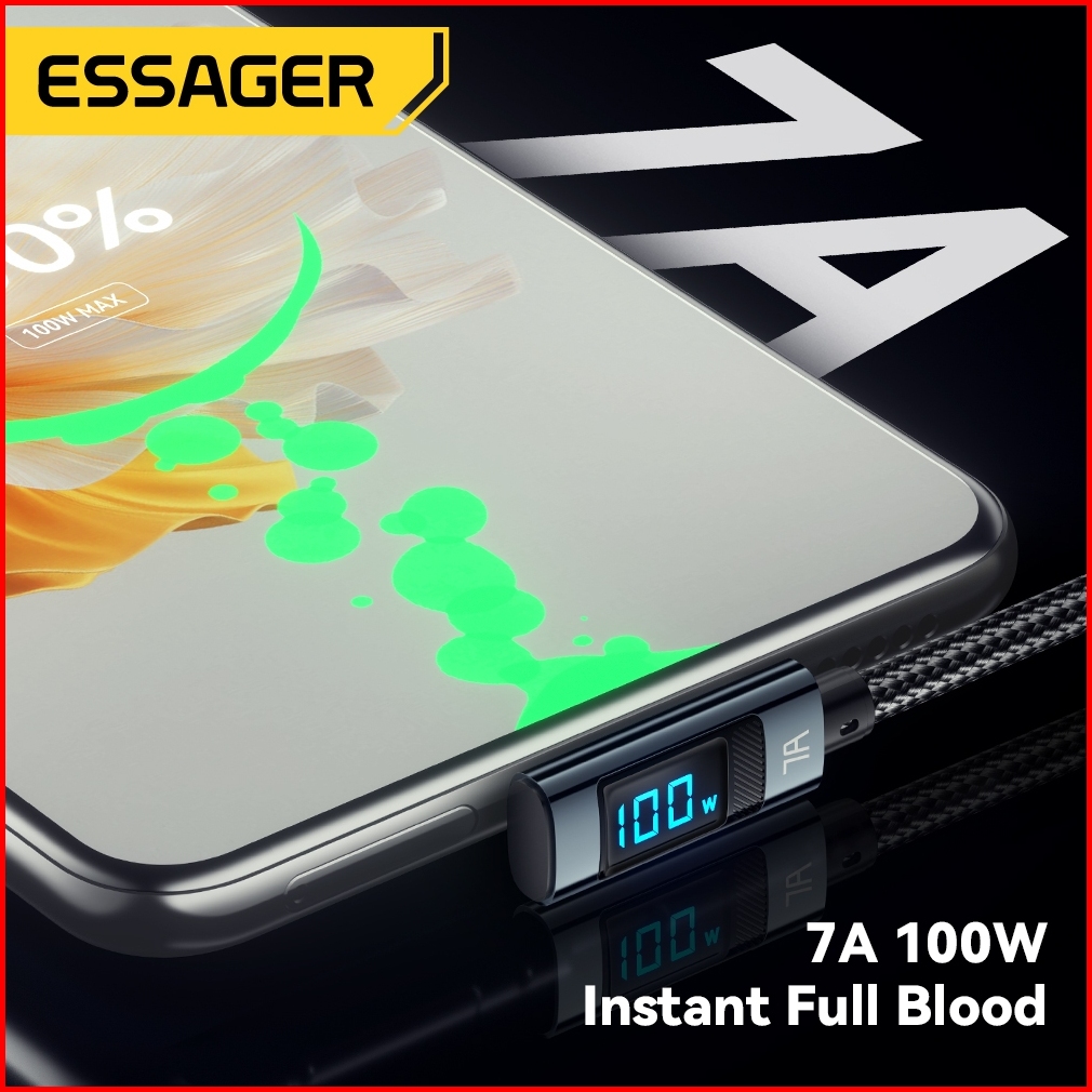 Essager Kabel Data Pengisian Cepat Siku 7a 100w Dengan Tampilan Daya Usb Ke Tipe C Tipe C Ke Tipe C