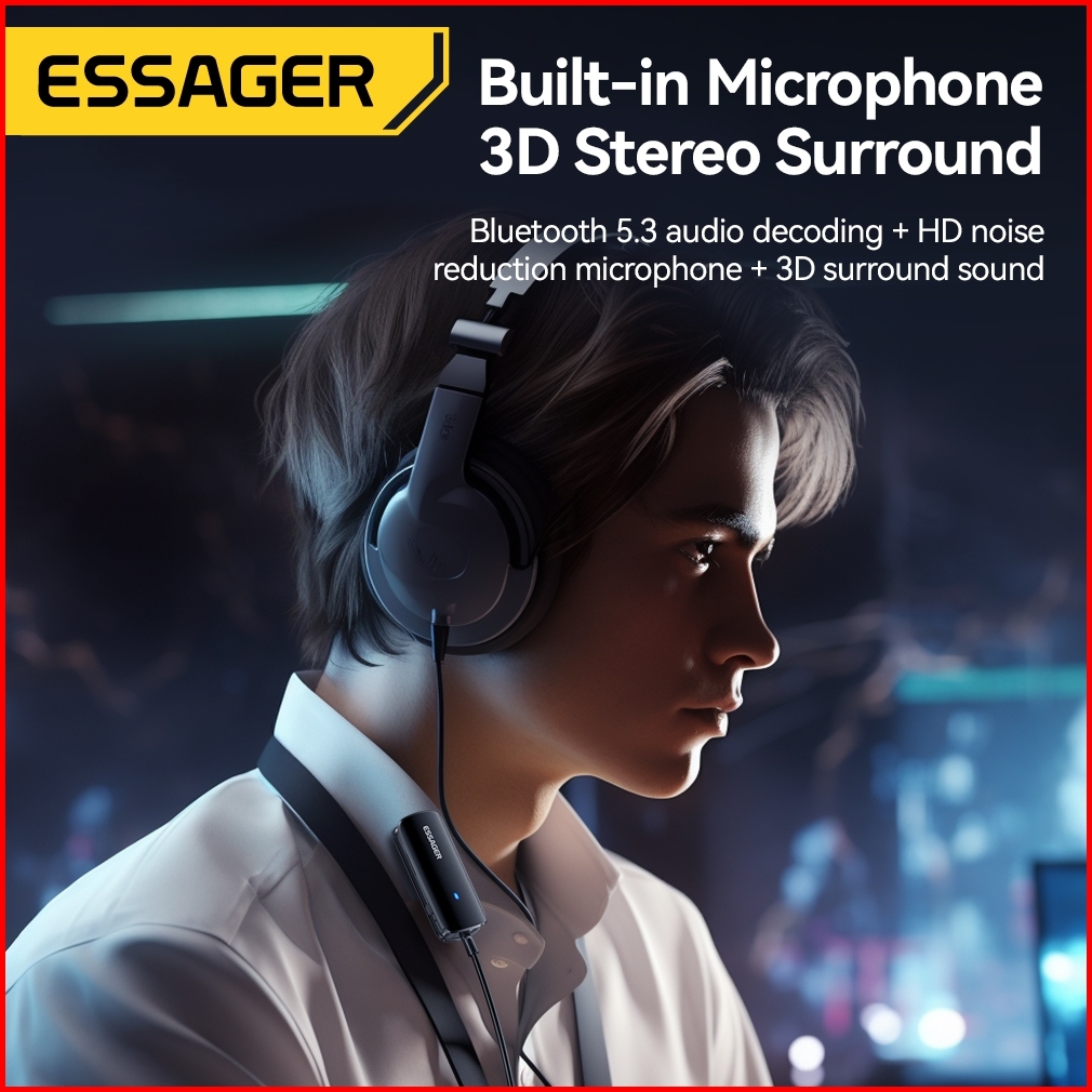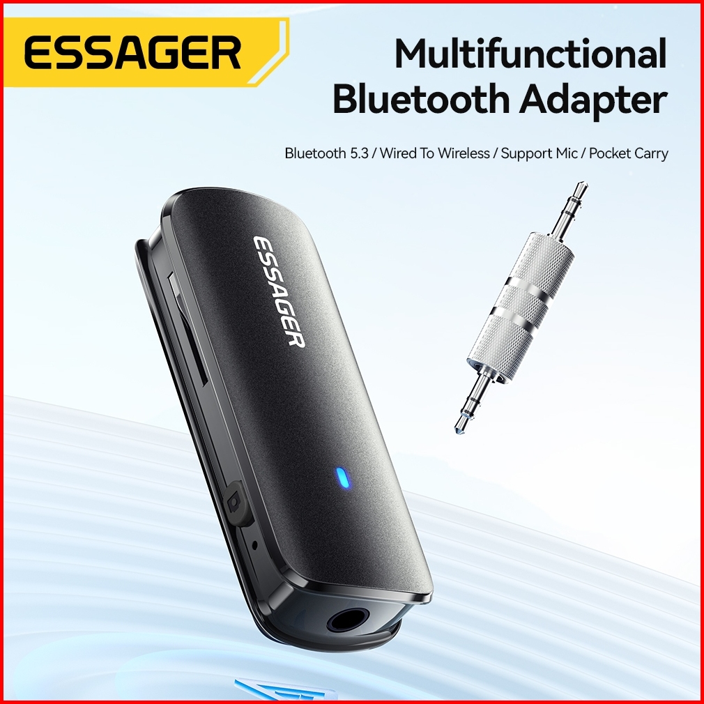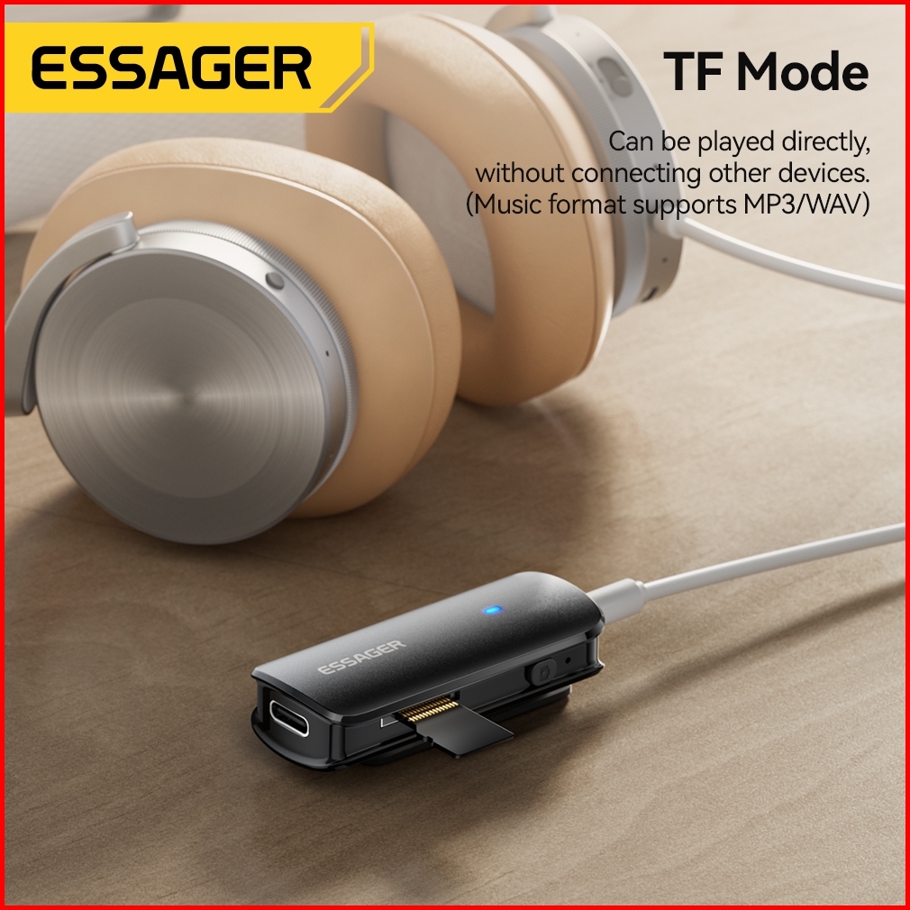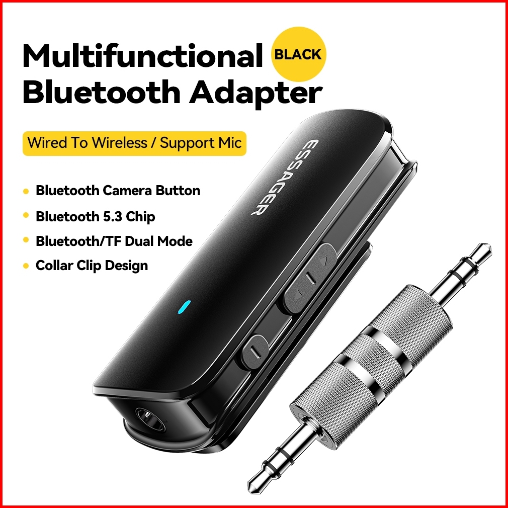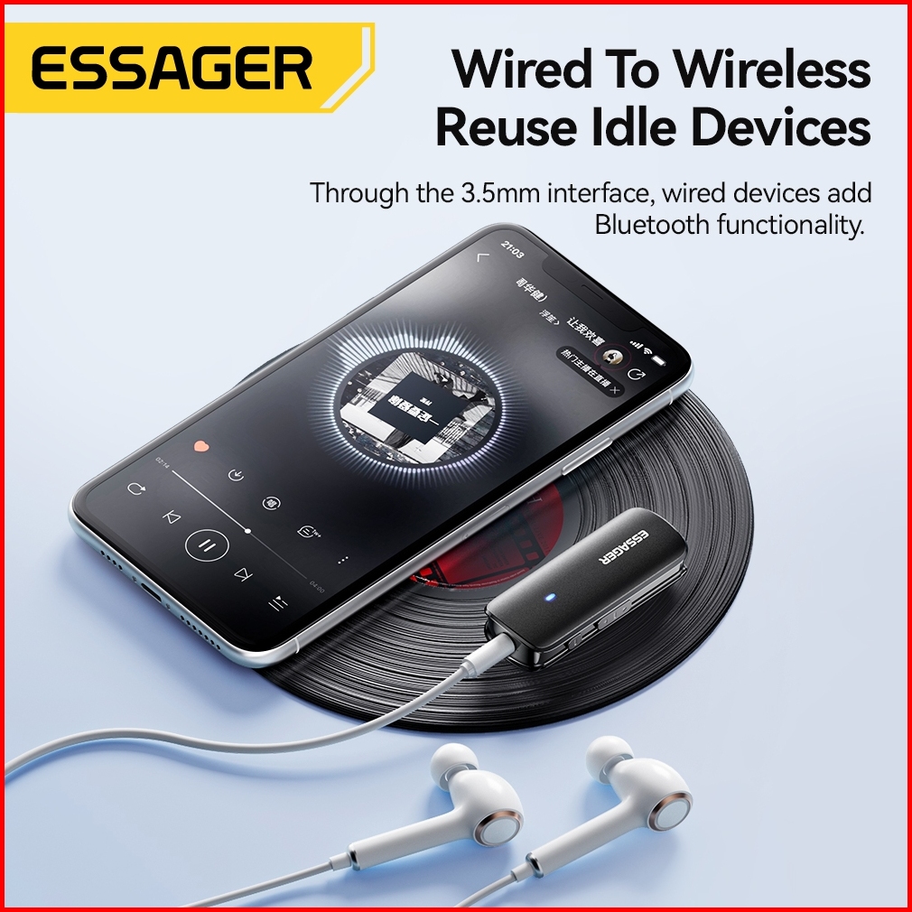 Essager Bluetooth 5.3 Penerima 3.5mm Aux Headphone Ke Adaptor Bluetooth Kompatibel Dengan Kartu Tf