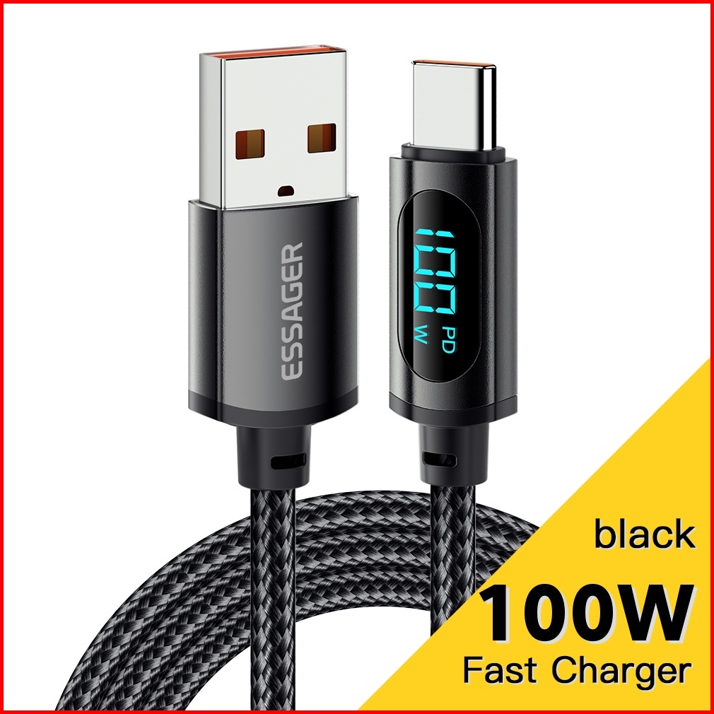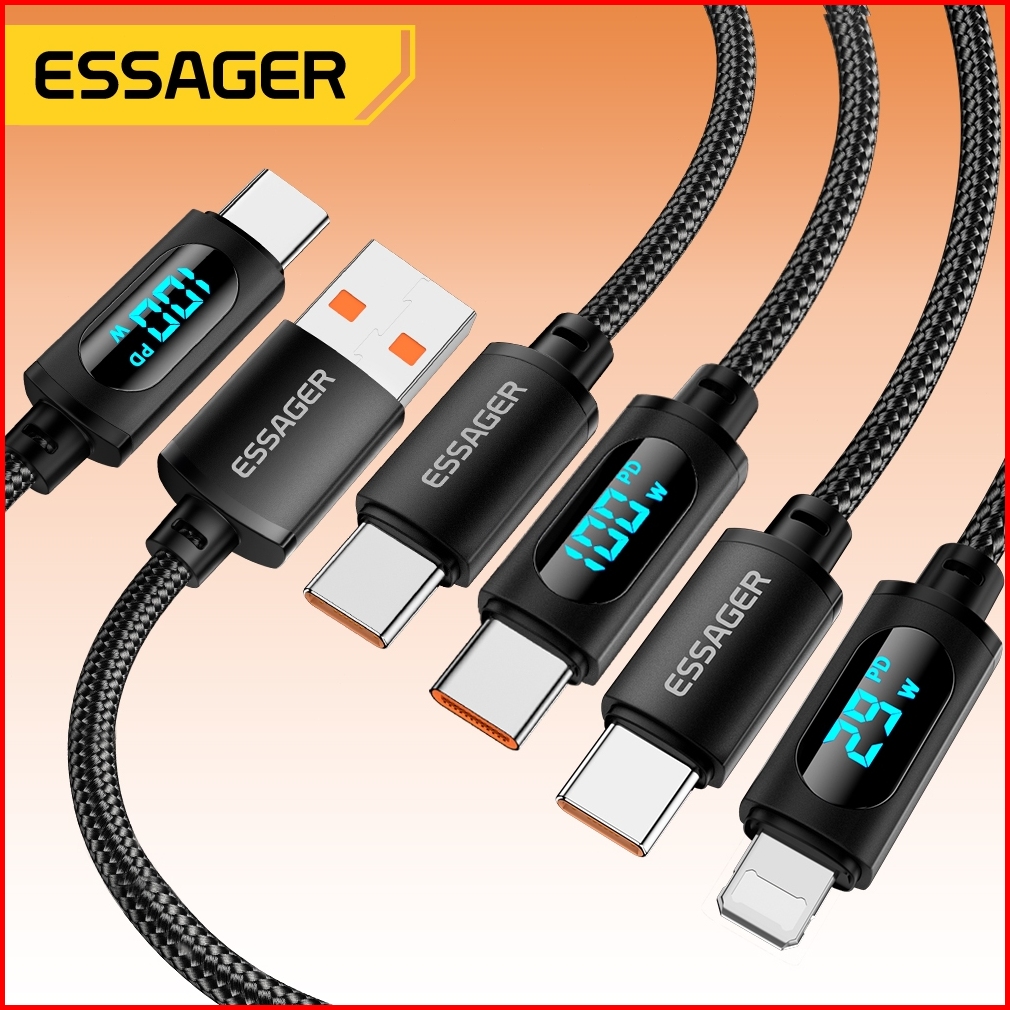 Essager 100w 29w Usb C Ke Tipe C Ke Ip Kabel Pengisian Cepat Tampilan Digital Data 480mbps