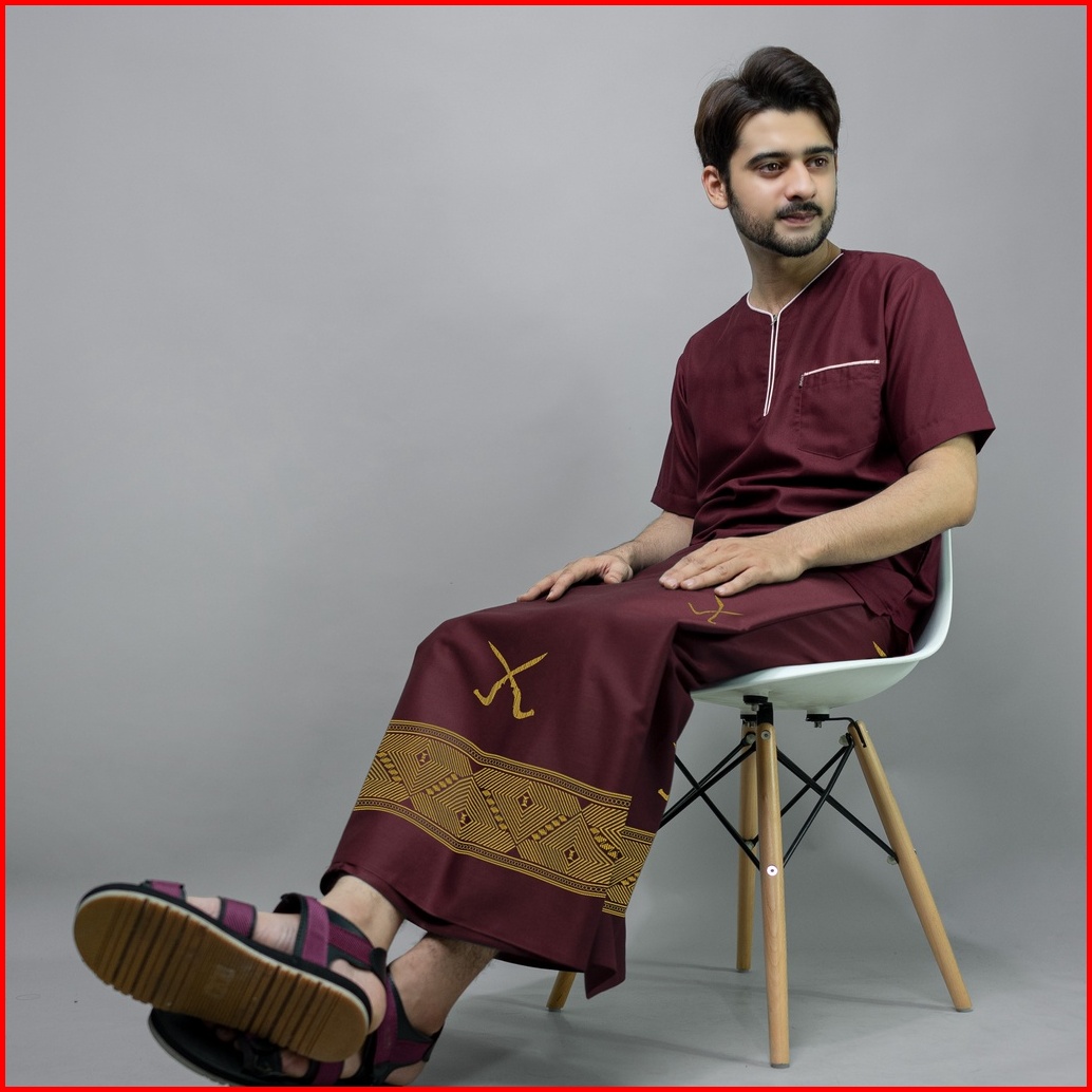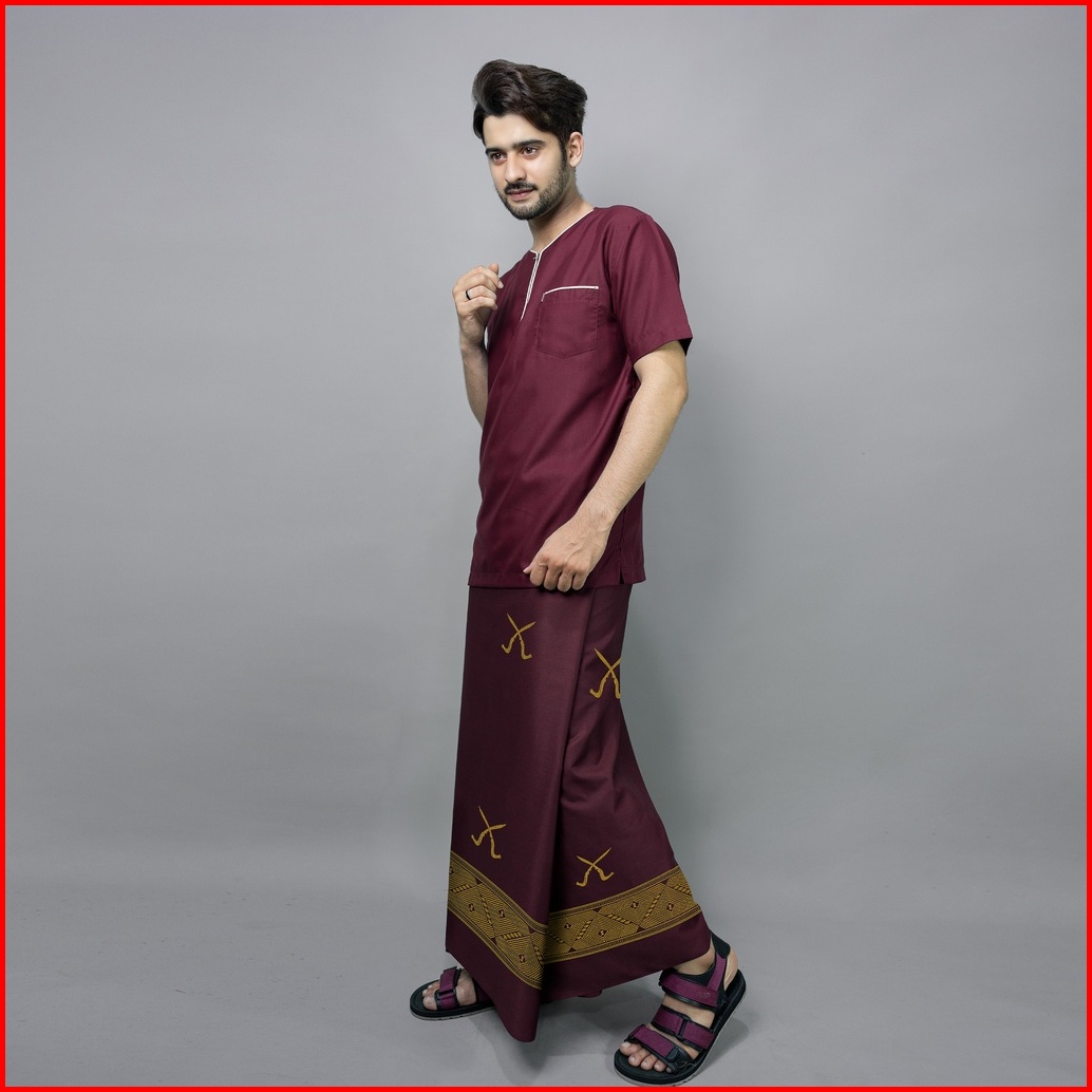 Katsae - Sarung Bordir Motif Rencongg Bordir Timbul Sarung Pria Dewasa Warna Maroon Sarung Sholat 100 Bordir