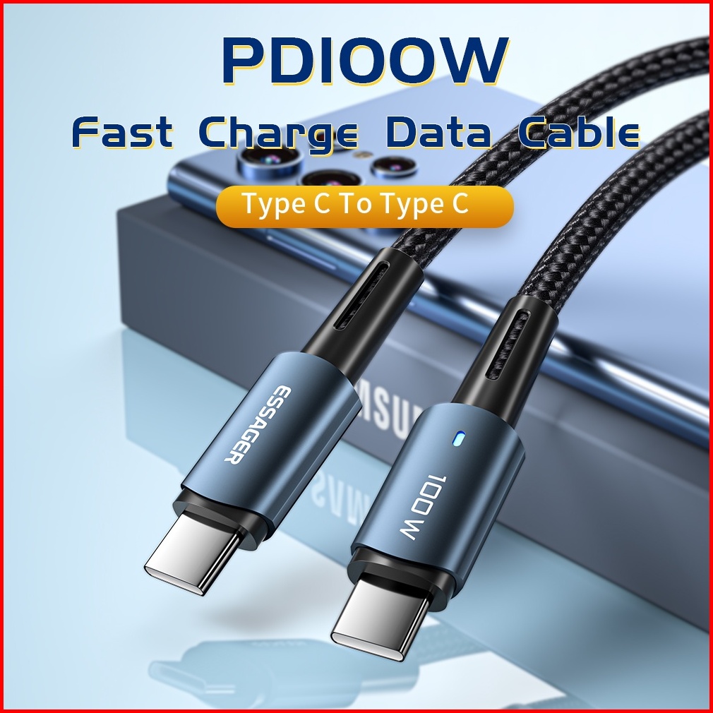 Essager Kabel Pengisian Cepat Tipe C Ke Tipe C 100w Untuk Samsung Ip Usb C Ke Kabel Usb C 480mbps