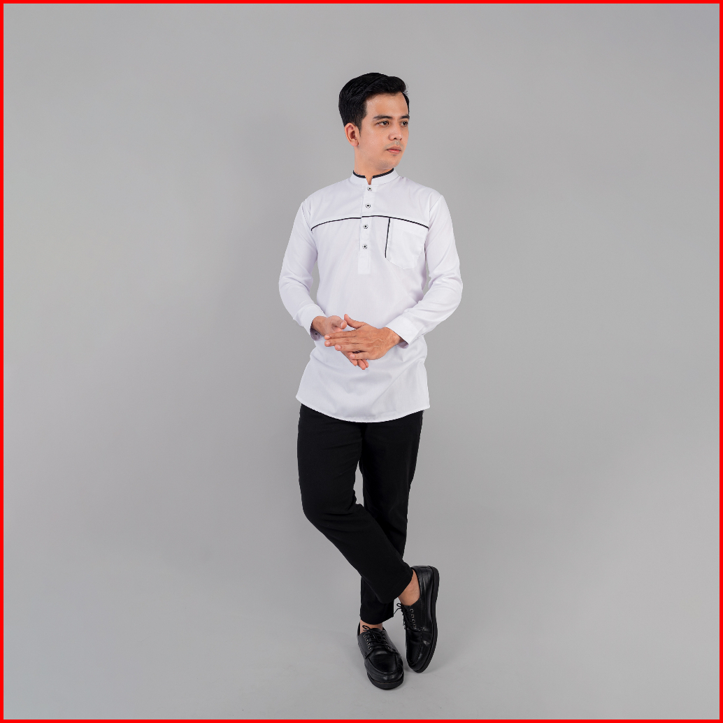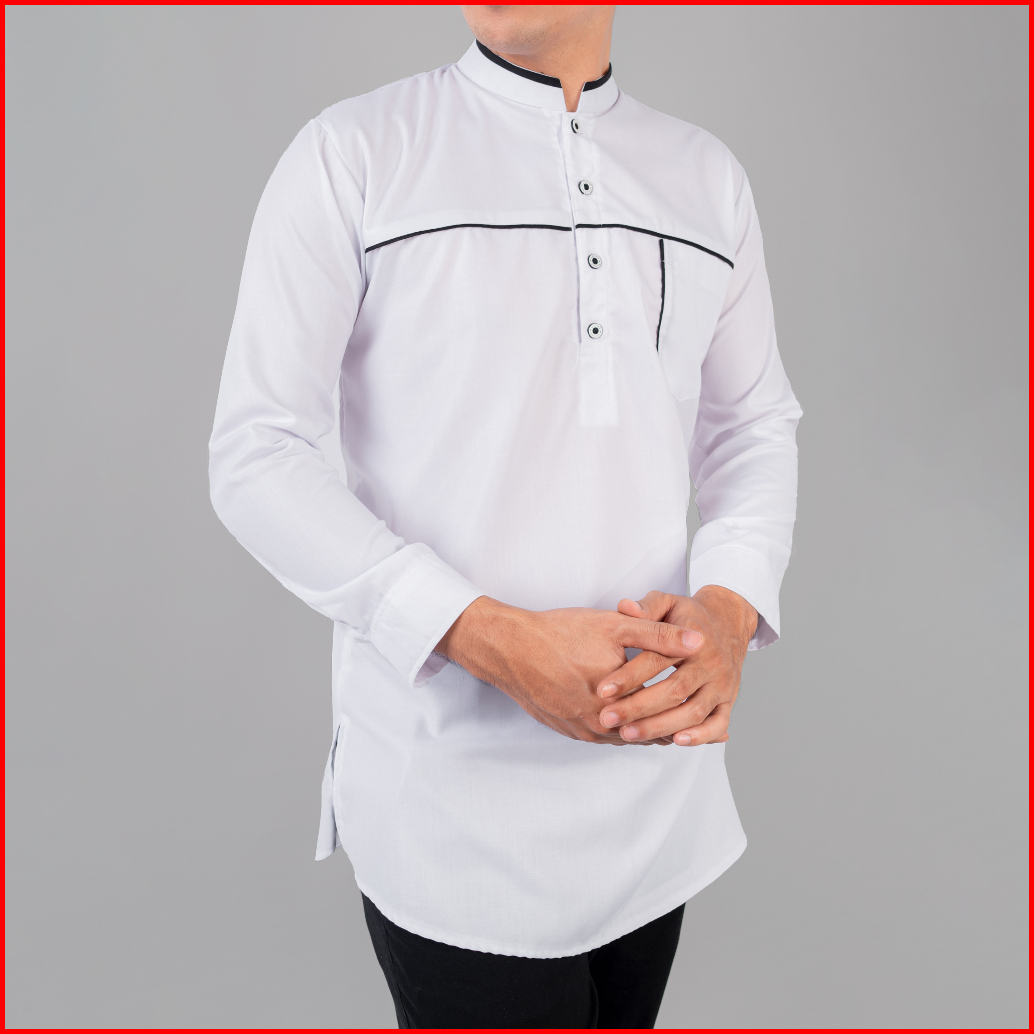 Katsae - Kemeja Koko Kurta Pria Dewasa Lengan Panjang Warna Putih Baju Muslim Achmad