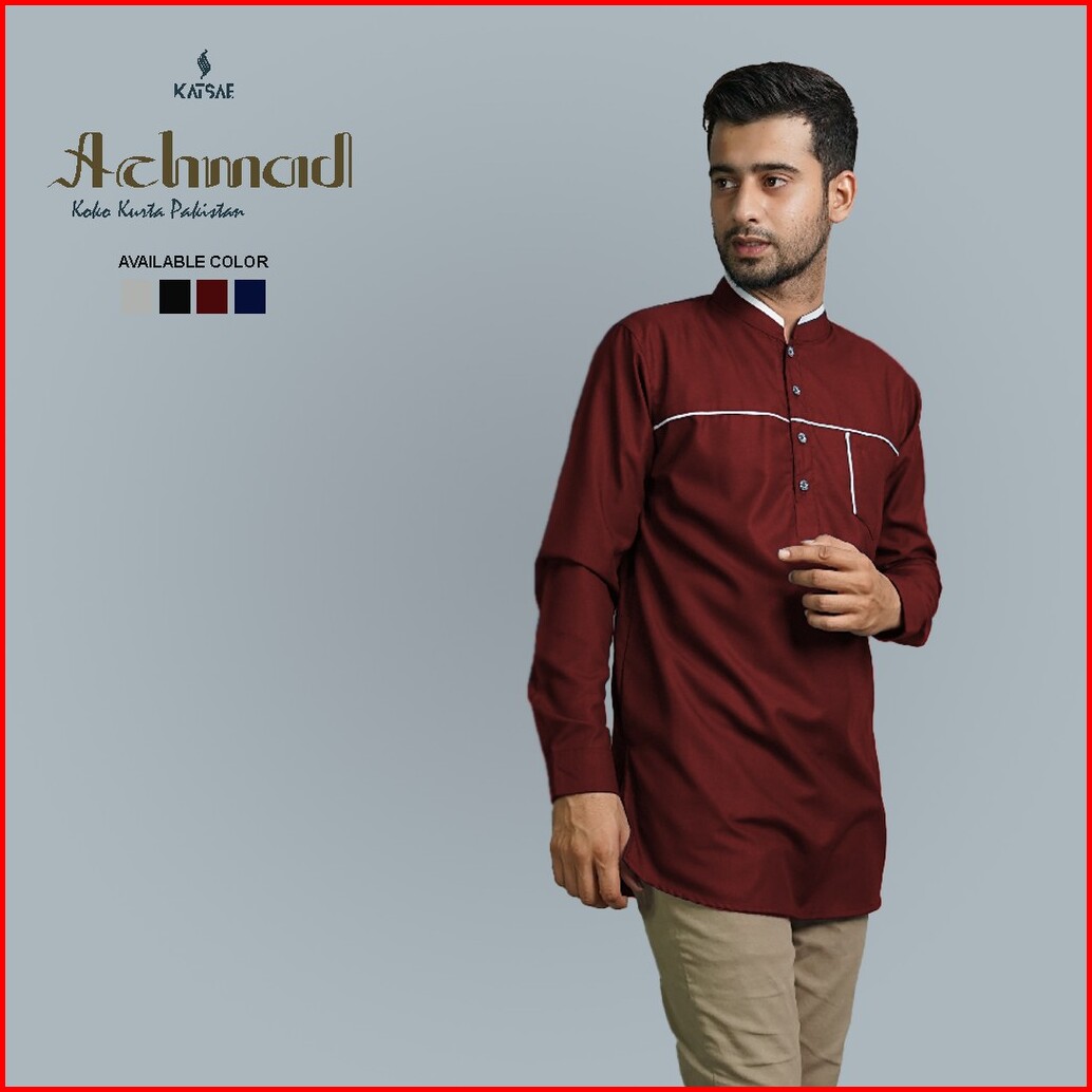 Katsae - Kurta Pakistan Lengan Panjang Achmad Koko Kurta Lis Hedlong Katun Premium