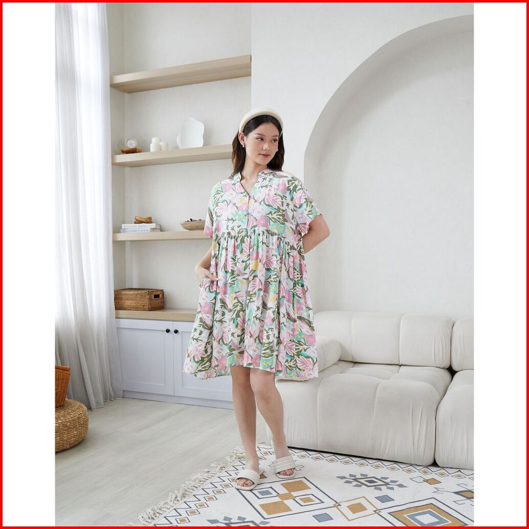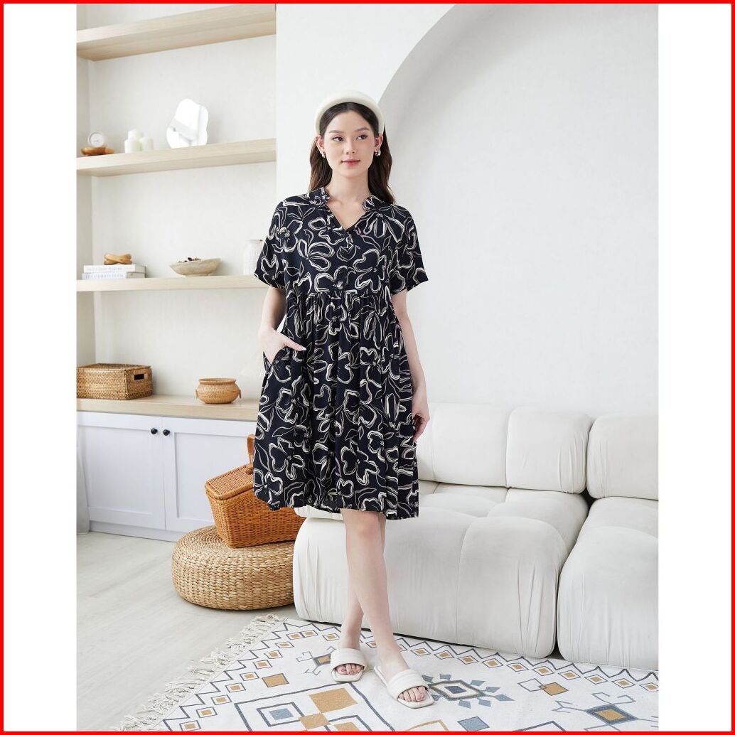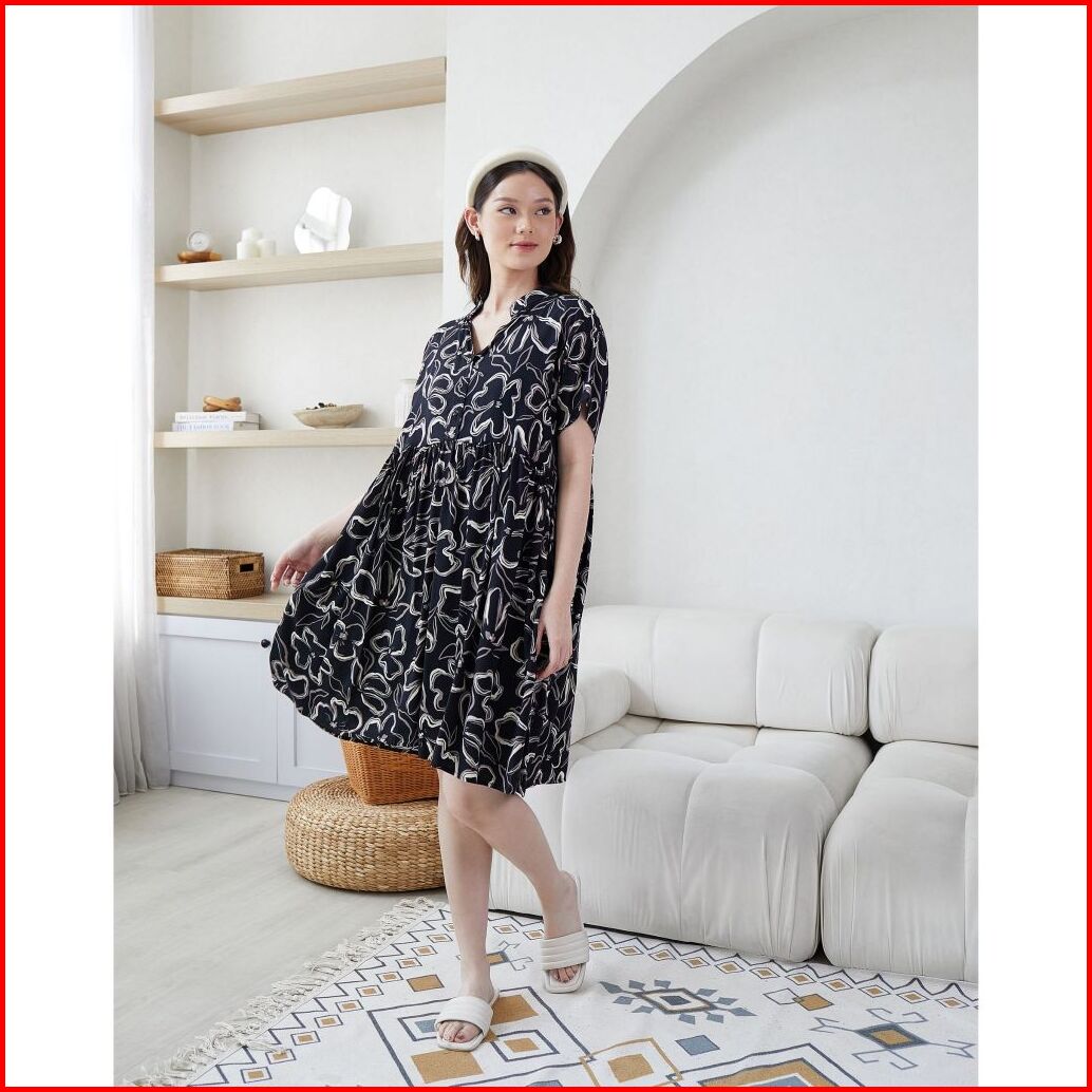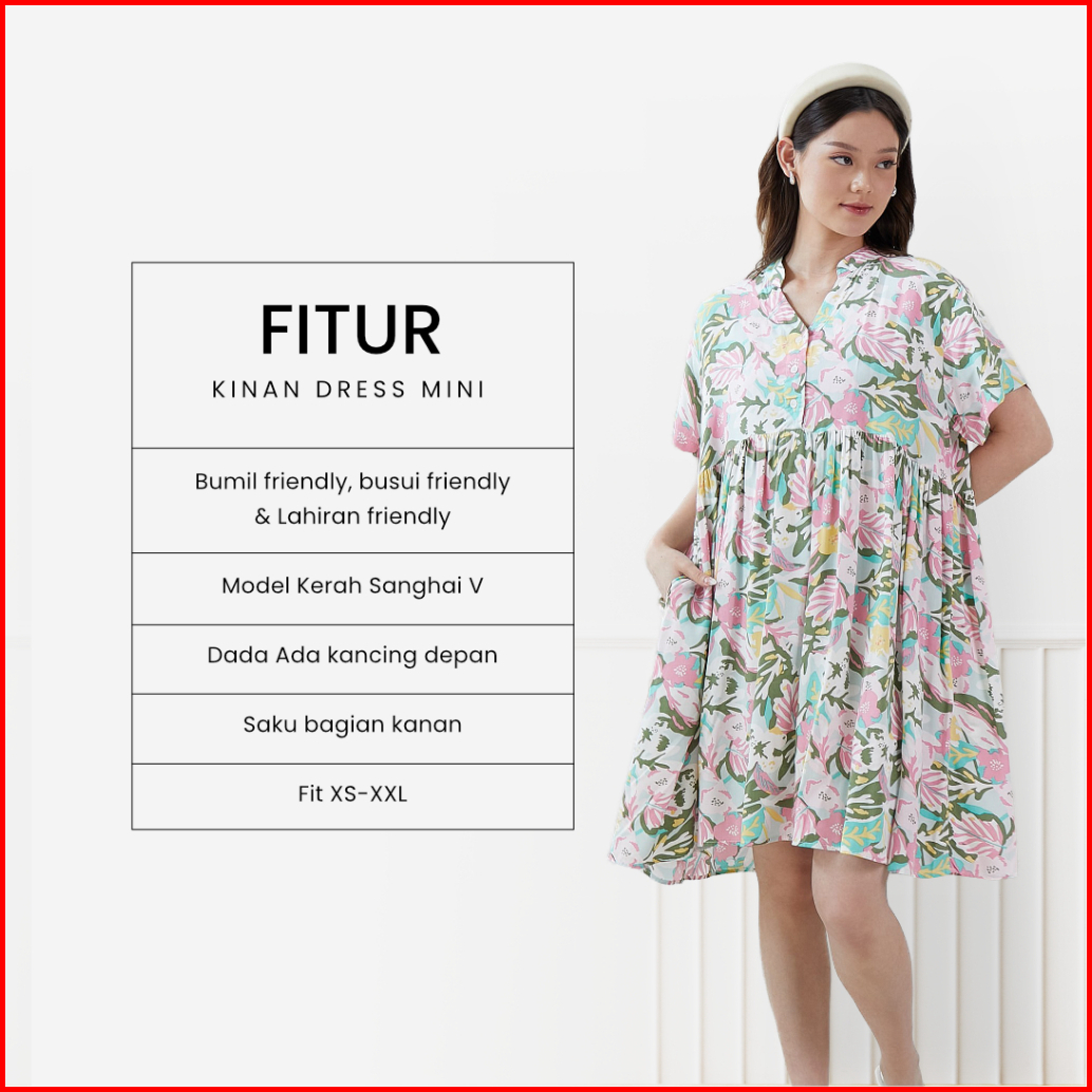 Dyd Label Kinan Mini Dress Wanita Bumil Busui Friendly Bahan Rayon Fit To Xl Nyaman Kancing Depan