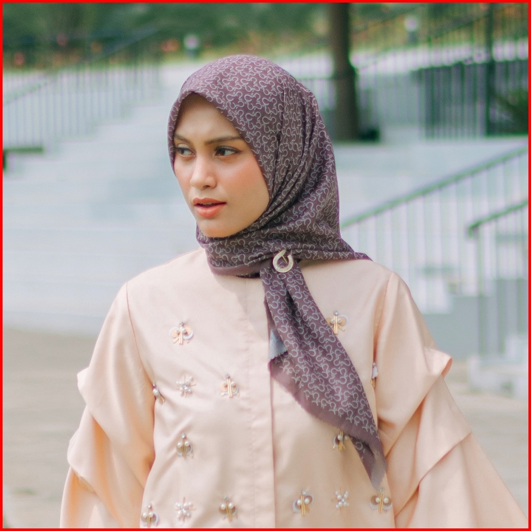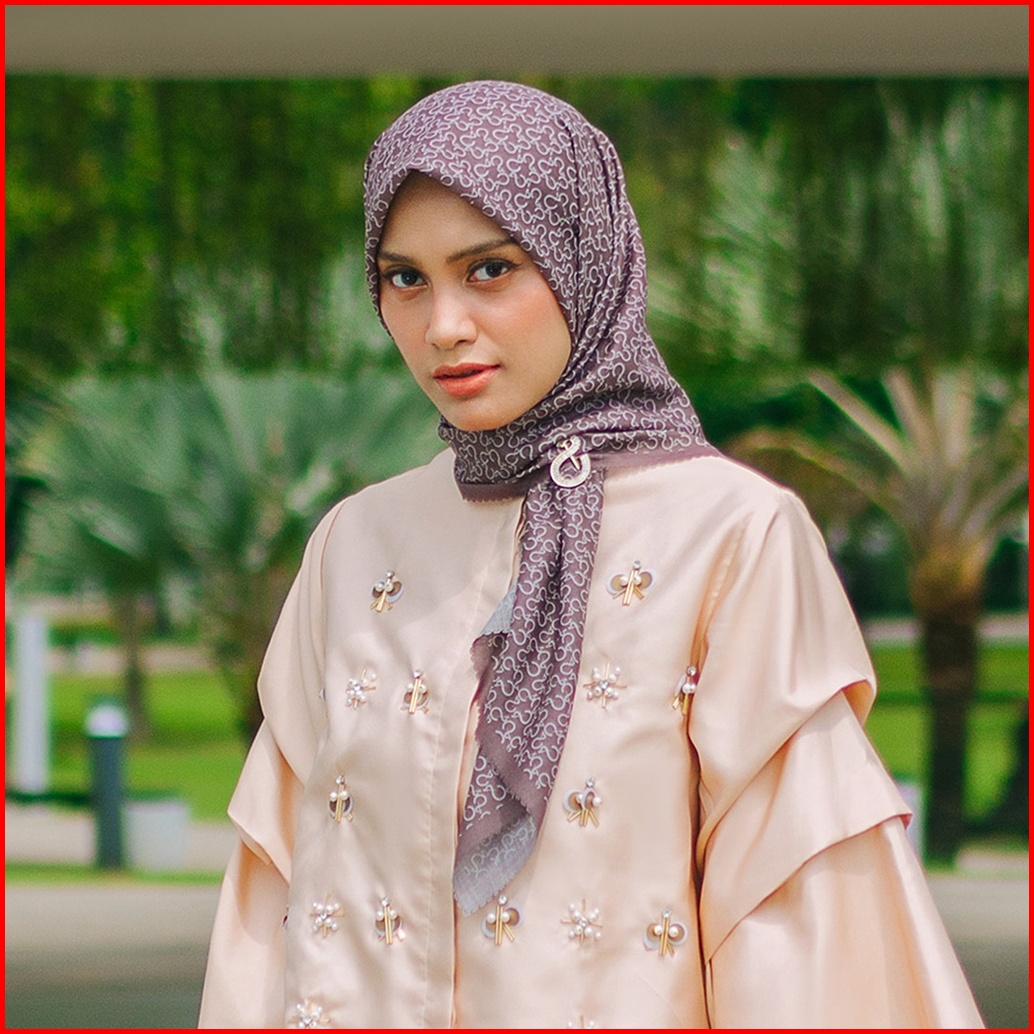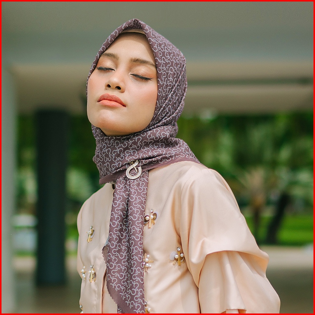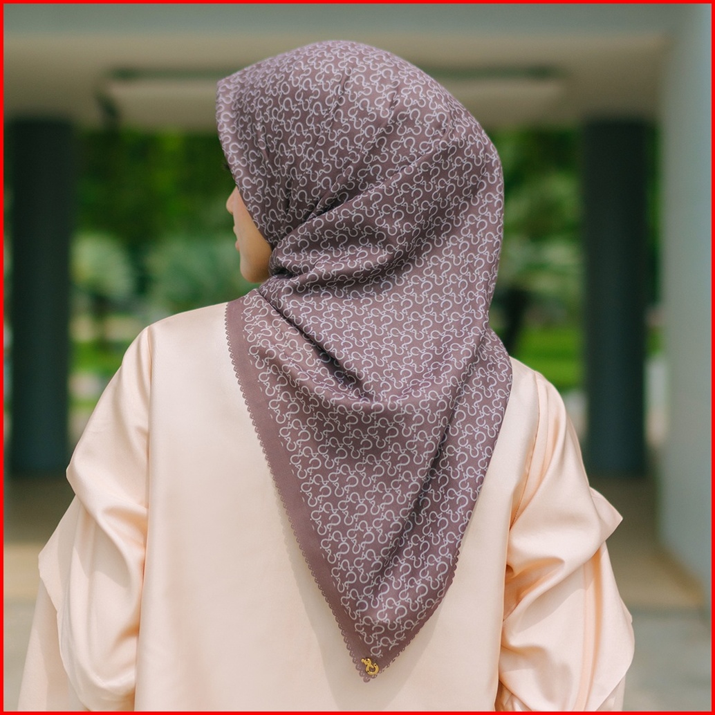 Jenna And Kaia - Monogram Scarf Deep Taupe - Hijab Kerudung Segi Empat