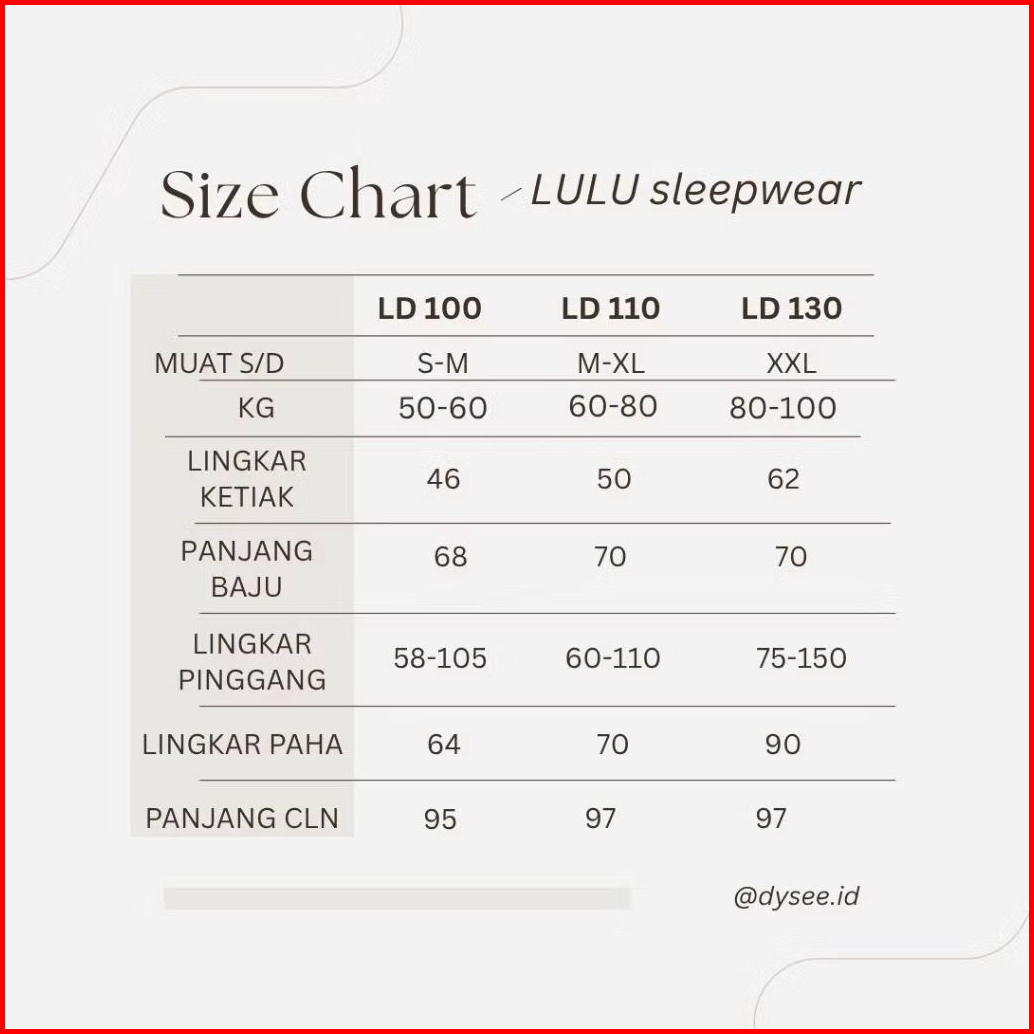 Lulu Sleepwear Lengan Pendek Rayoon Adem Katun