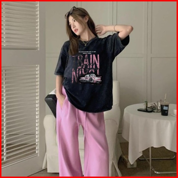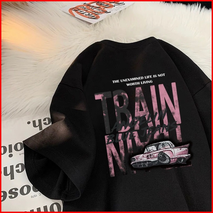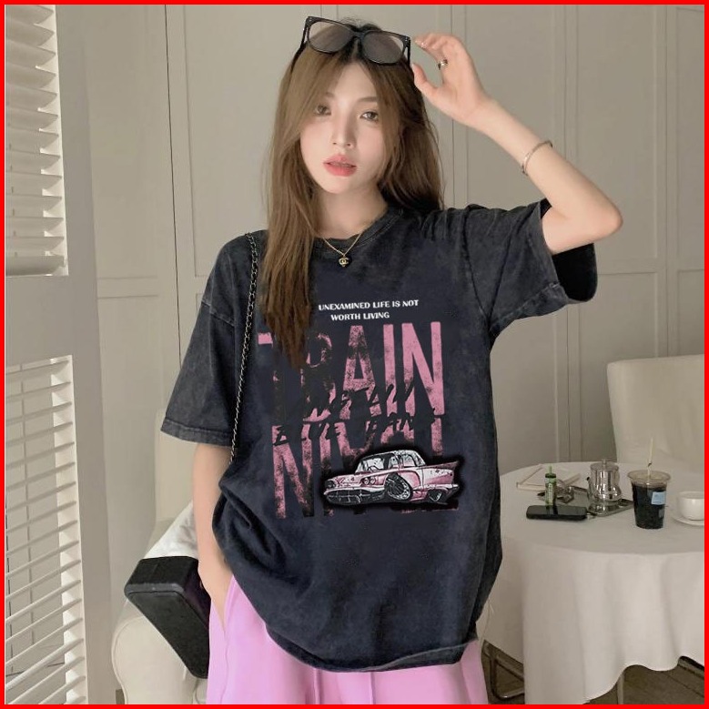 Forteid T-shirt Lengan Pendek Baju Kaos Oversize Wanita Baju Korean Style Baju Atasan Wanita Terbaru Tbain Car Cotton At