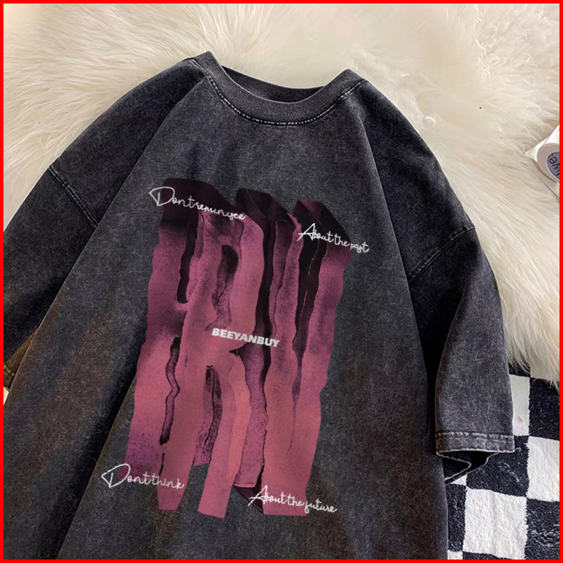 A1001 Forteid-t-shirt Washed Oversize Street Style Kaos Wanita Hitam Baju Atasan Lengan Pendek Wanita Kaos Oversize Terb