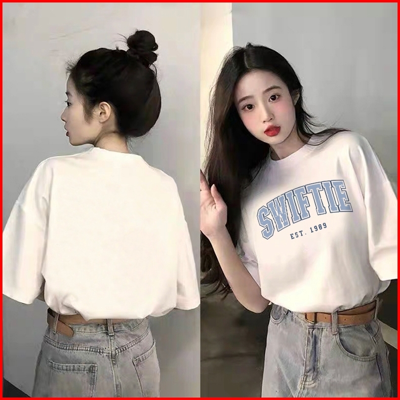 Forteid Pencetakan Surat Trendi Modis Tshirt Kekinian Korean Style Kaos Oversize Wanita Baju Atasan Wanita Terbaru 100 C