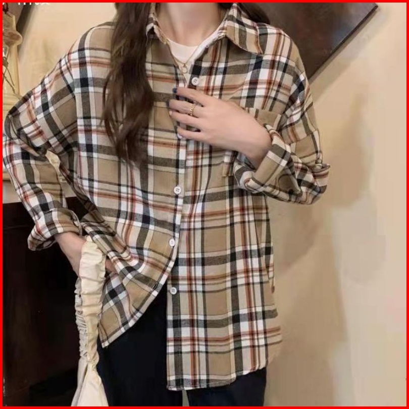 Atasan Wanita Kemeja Flanel Wanita Flanel Wanita Kemeja Kotak Kotak Wanita Blouse Wanita