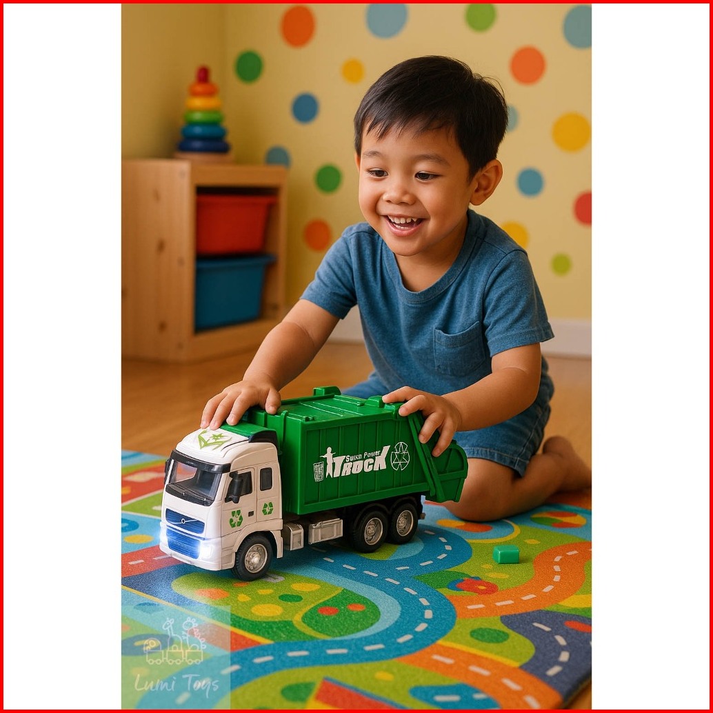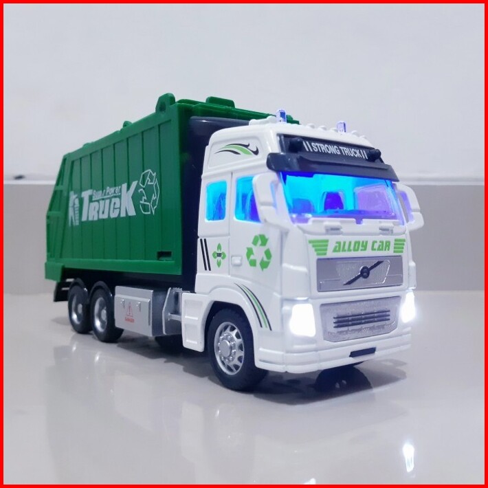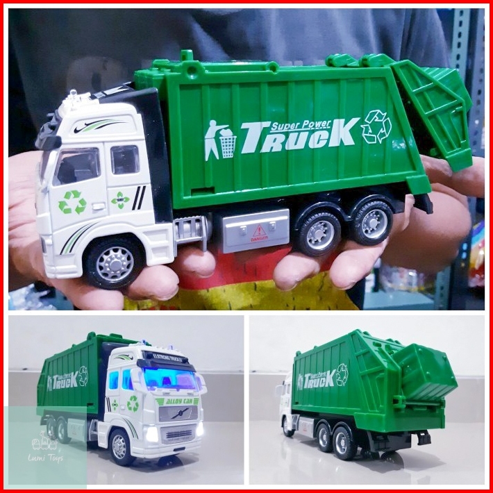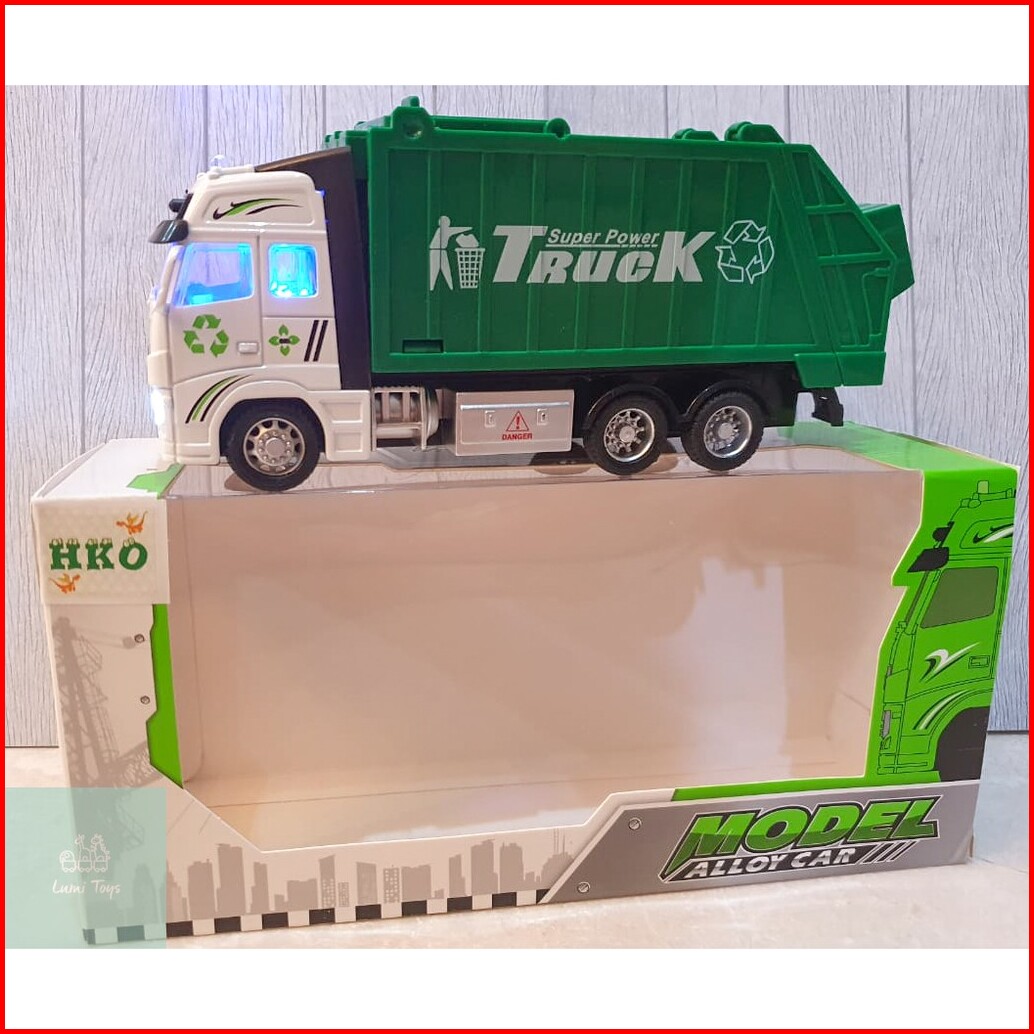 Mainan Diecast Mobil Metal Garbage Truck Truk Sampah Pull Back 611b