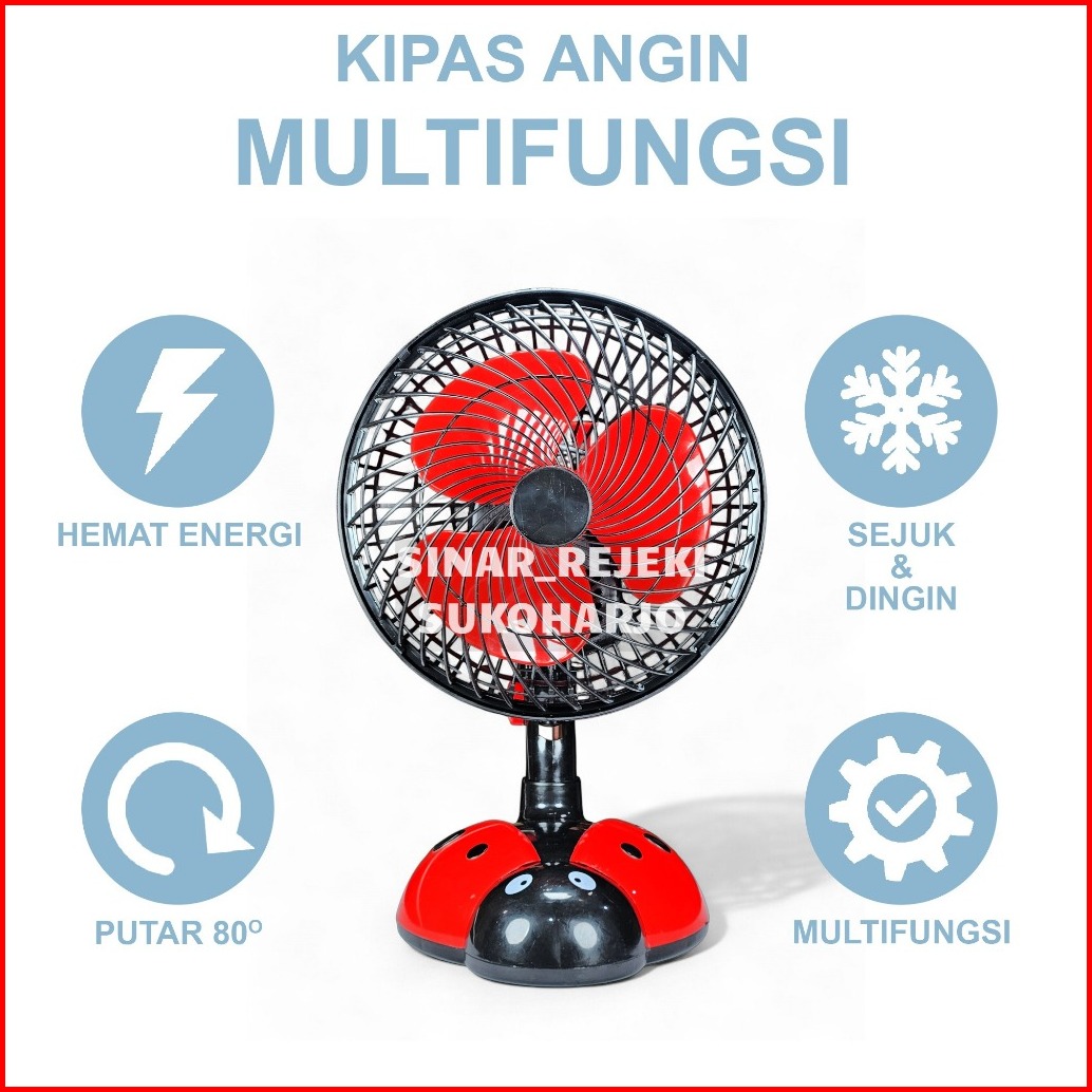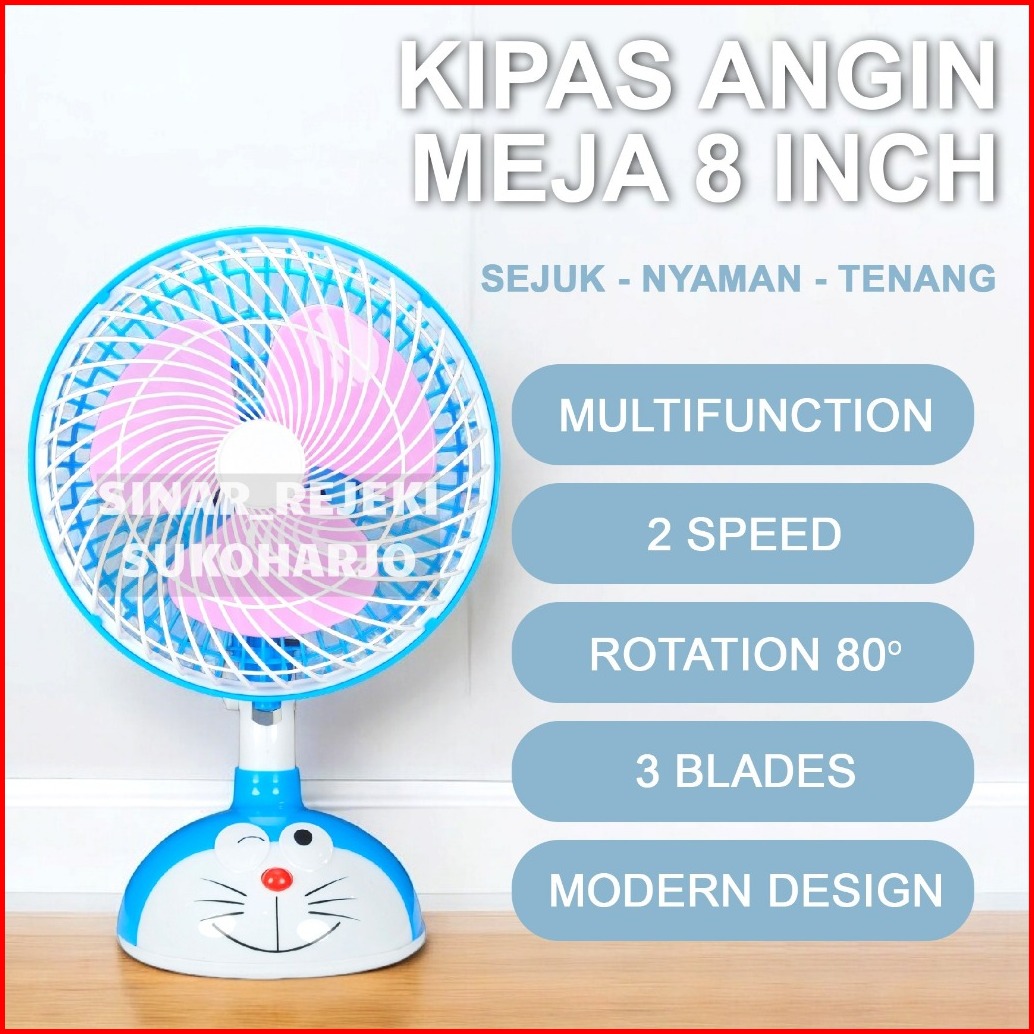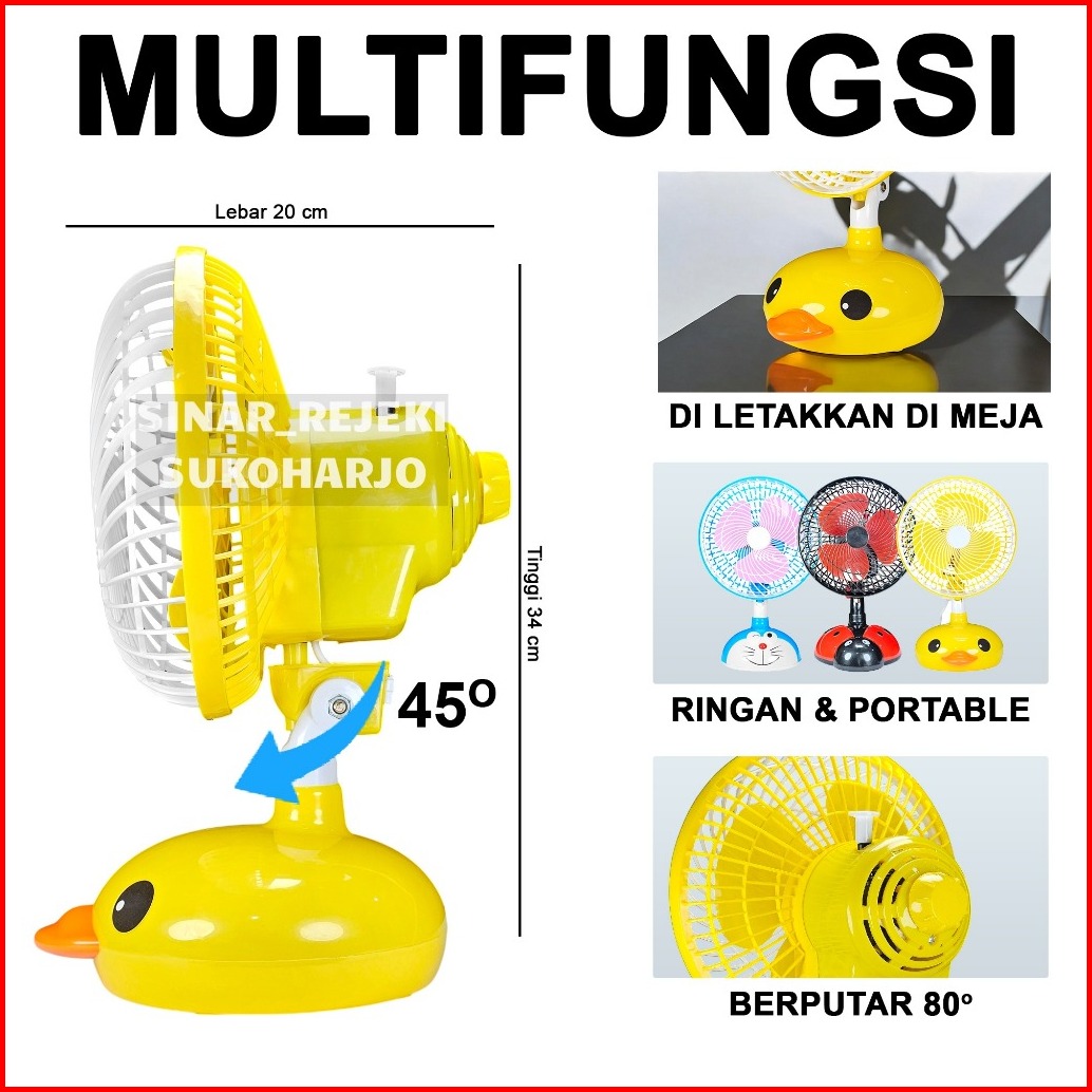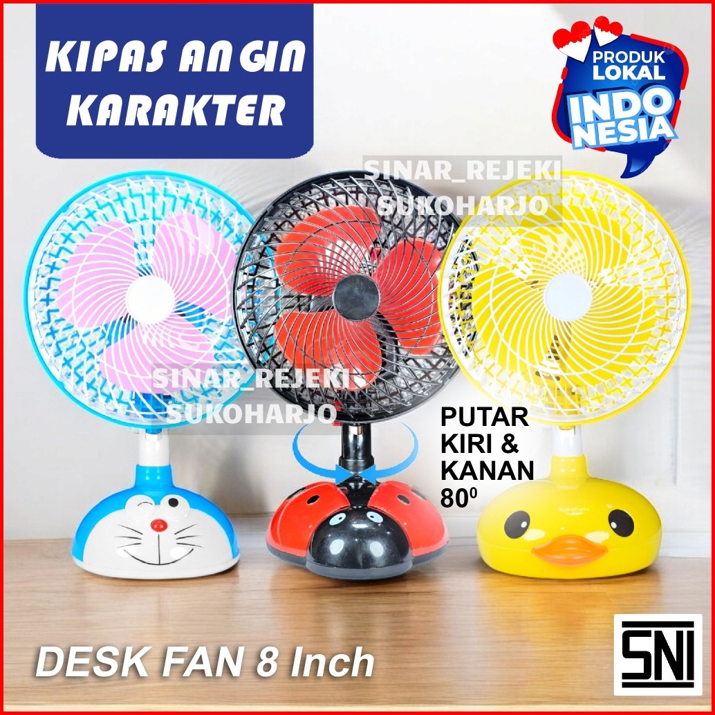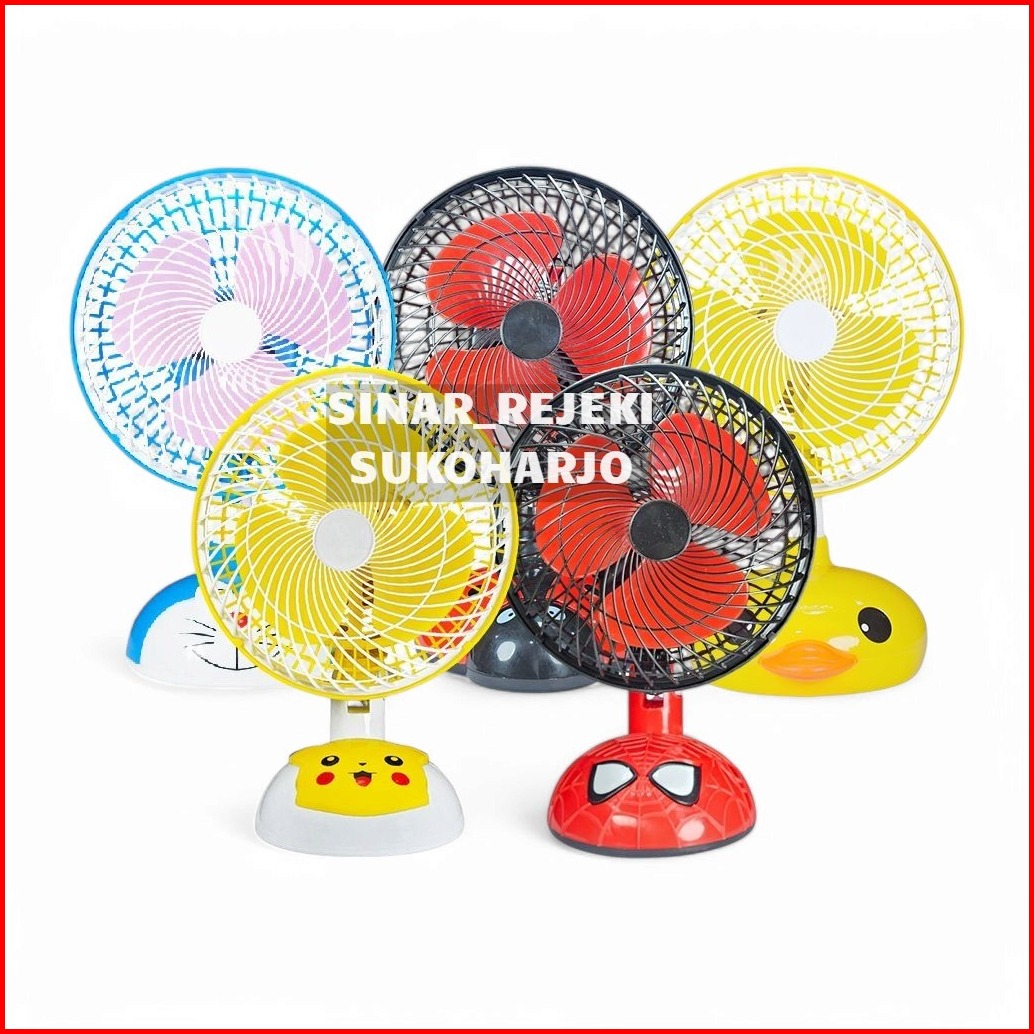Kipas Angin Karakter Multi Fungsi Meja Duduk Muter Kiri Kanan Ukuran 8 Inch 25 Watt