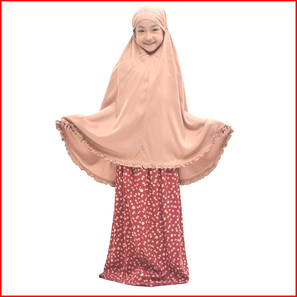 Rabbani X Mot Mukena Anak Adella Amoa Macaroon - Red Dahlia