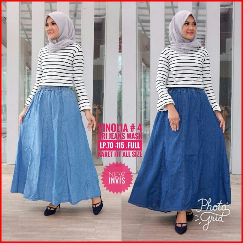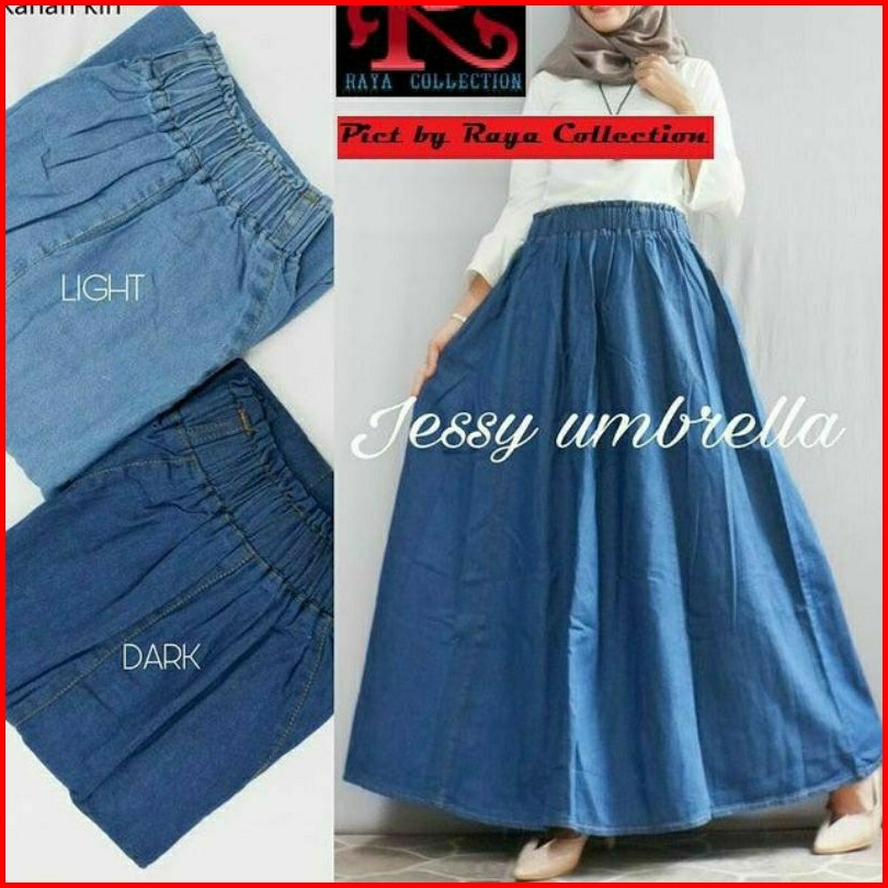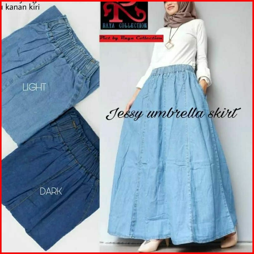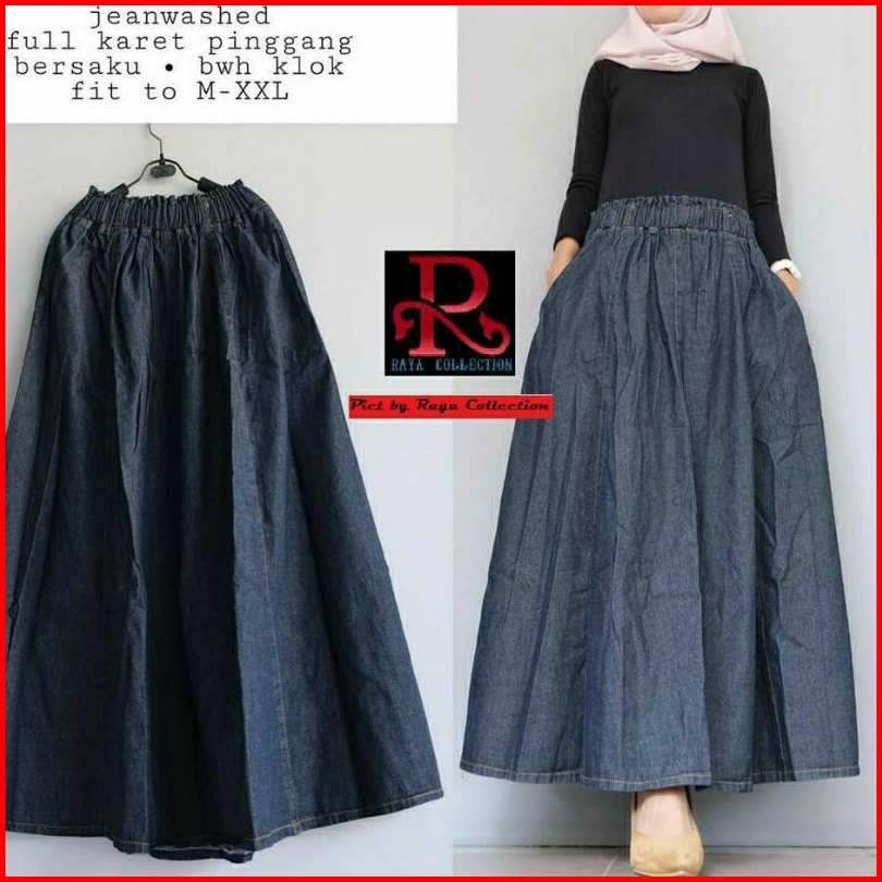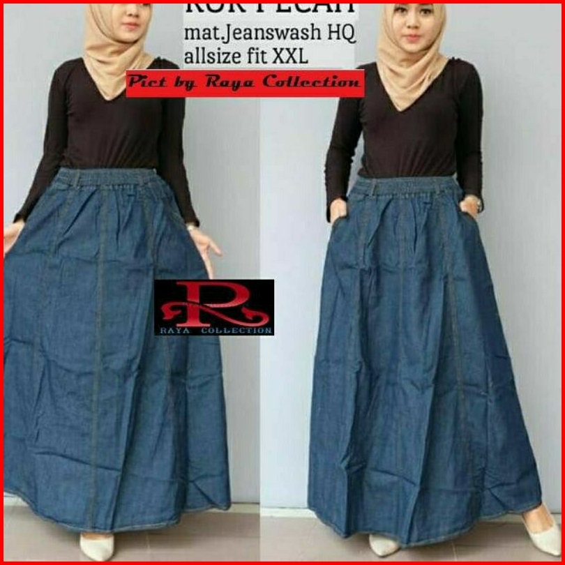 Rok Jeans Wanita Jumbo Belah 8 Rok Jeans Jumbo Pecah 8