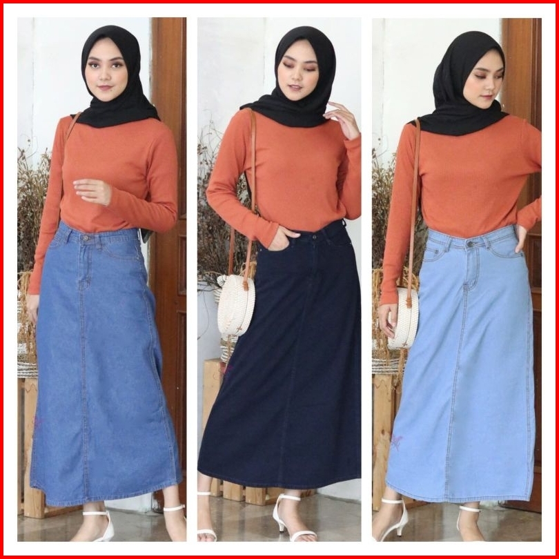 Rok Jeans Panjang Skirt Wanita Jumbo