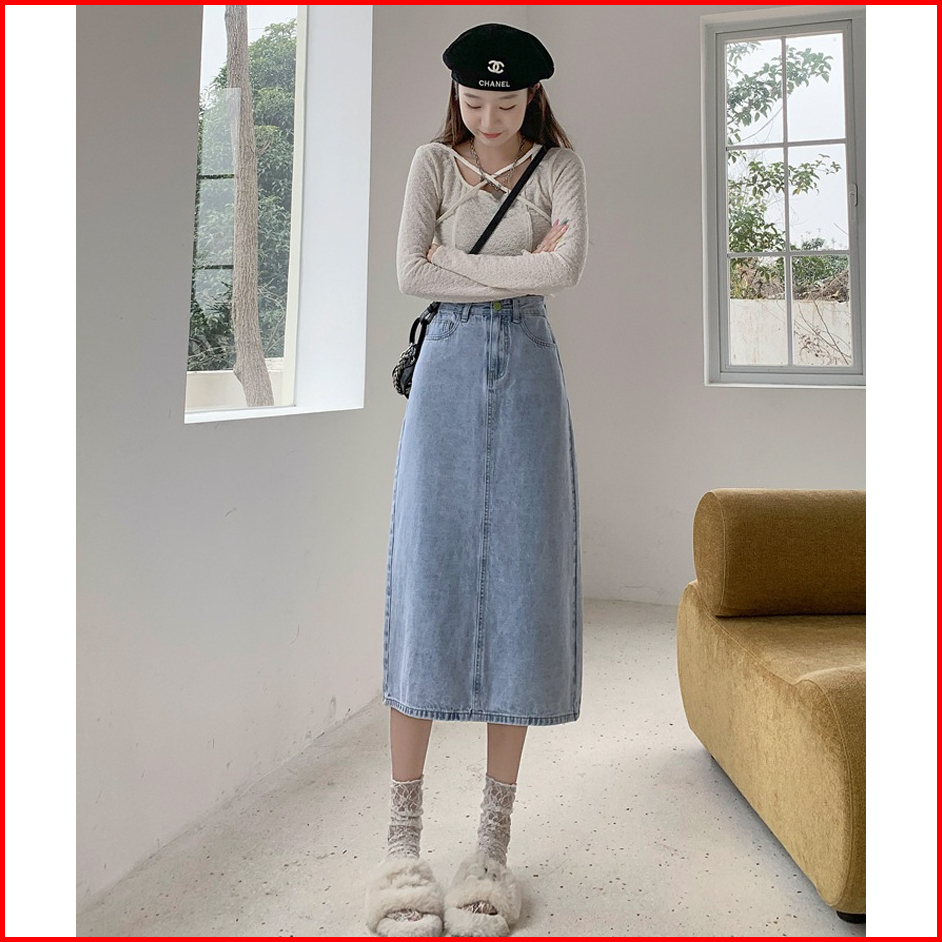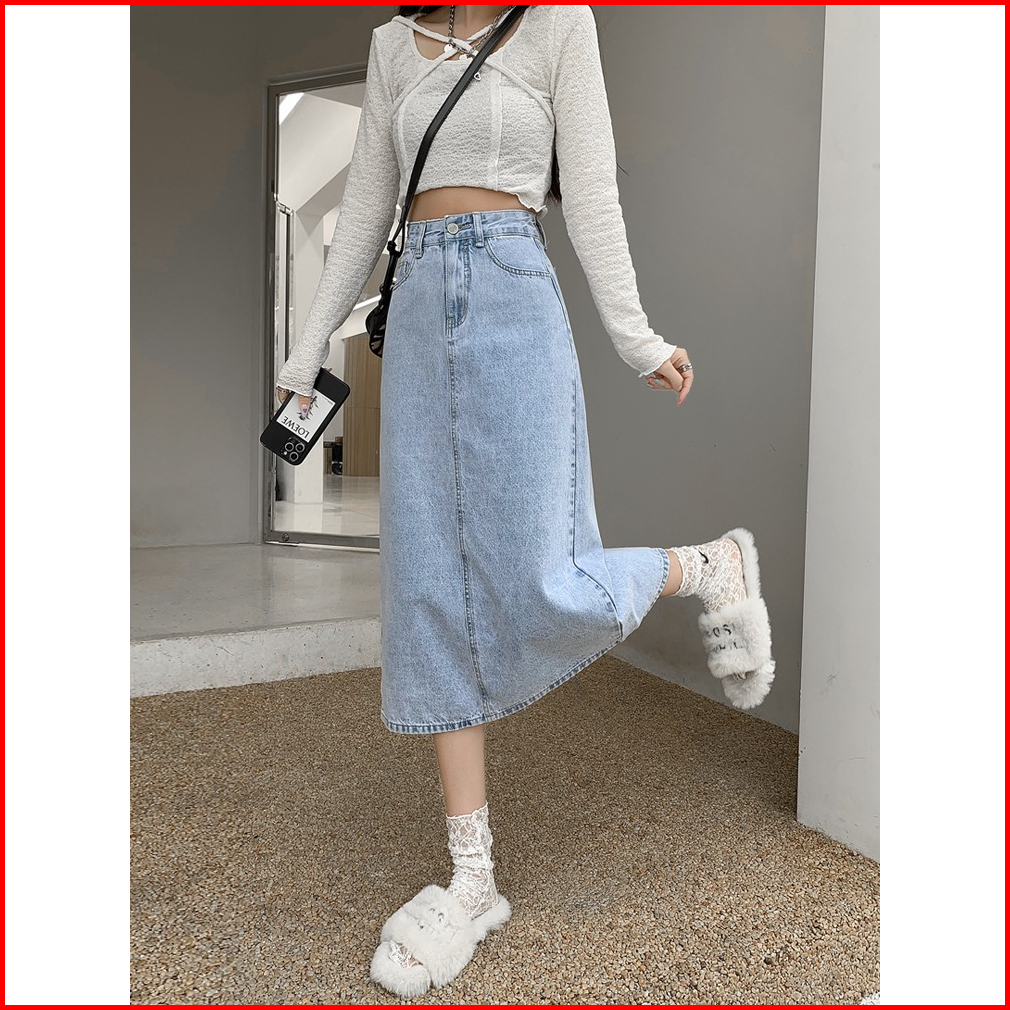 Luck Wanitabiru Muda Highwaist A-line Rok Jeans Wanita Polos