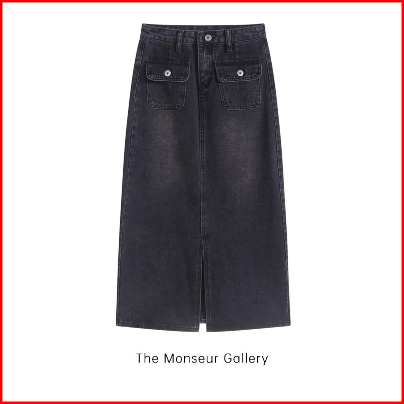 Obral Cuci Gudang The Monseur Gallery Rok Denim Panjang Wanita Slit A-line Skirt Midi Korean Style