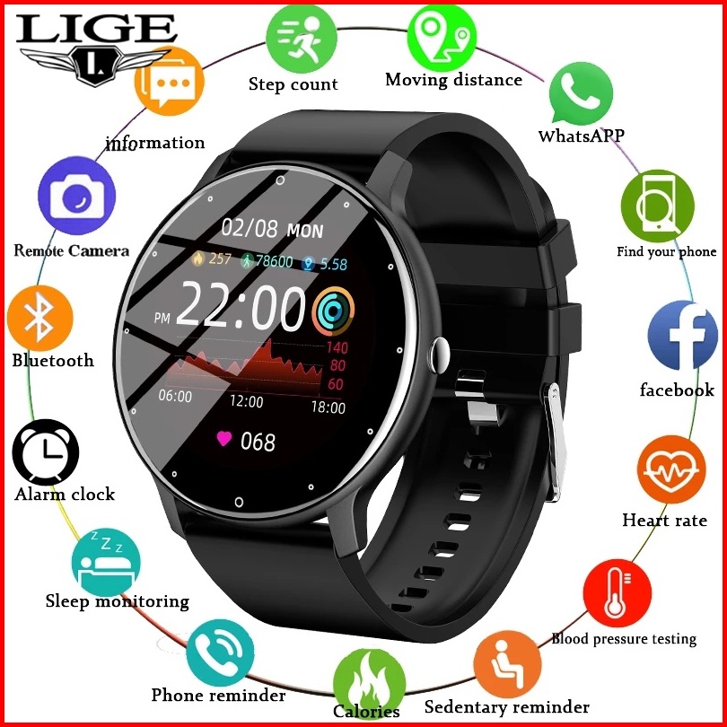 Lige Jam Tangan Pintar Pelacak Kebugaran Tahan Air Layar Sentuh Penuh Jam Tangan Olahraga Bluetooth Smartwatch Untuk And