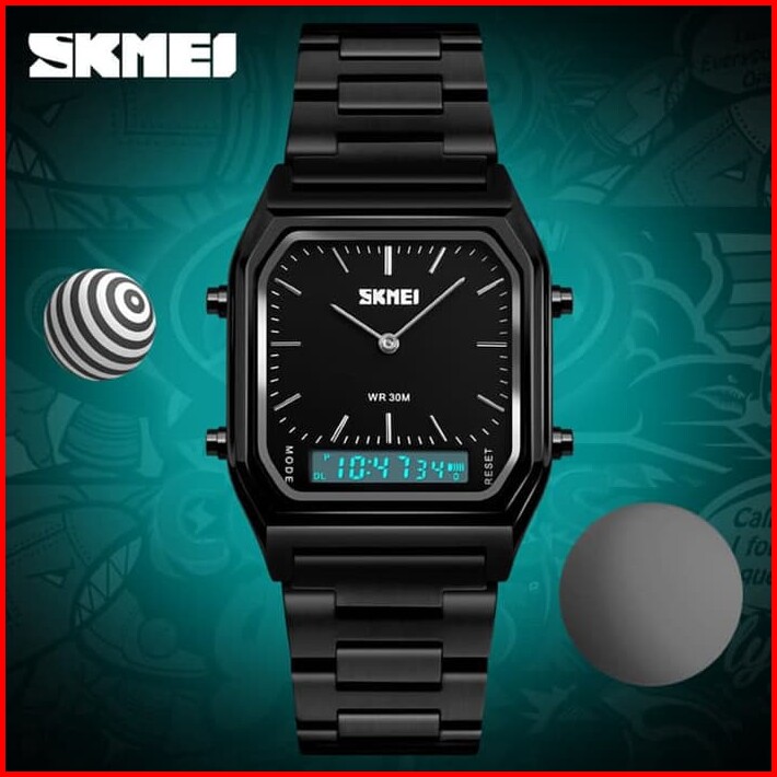 Jam Tangan Pria Digital Analog Skmei 1220 Black Water Resistant 30m