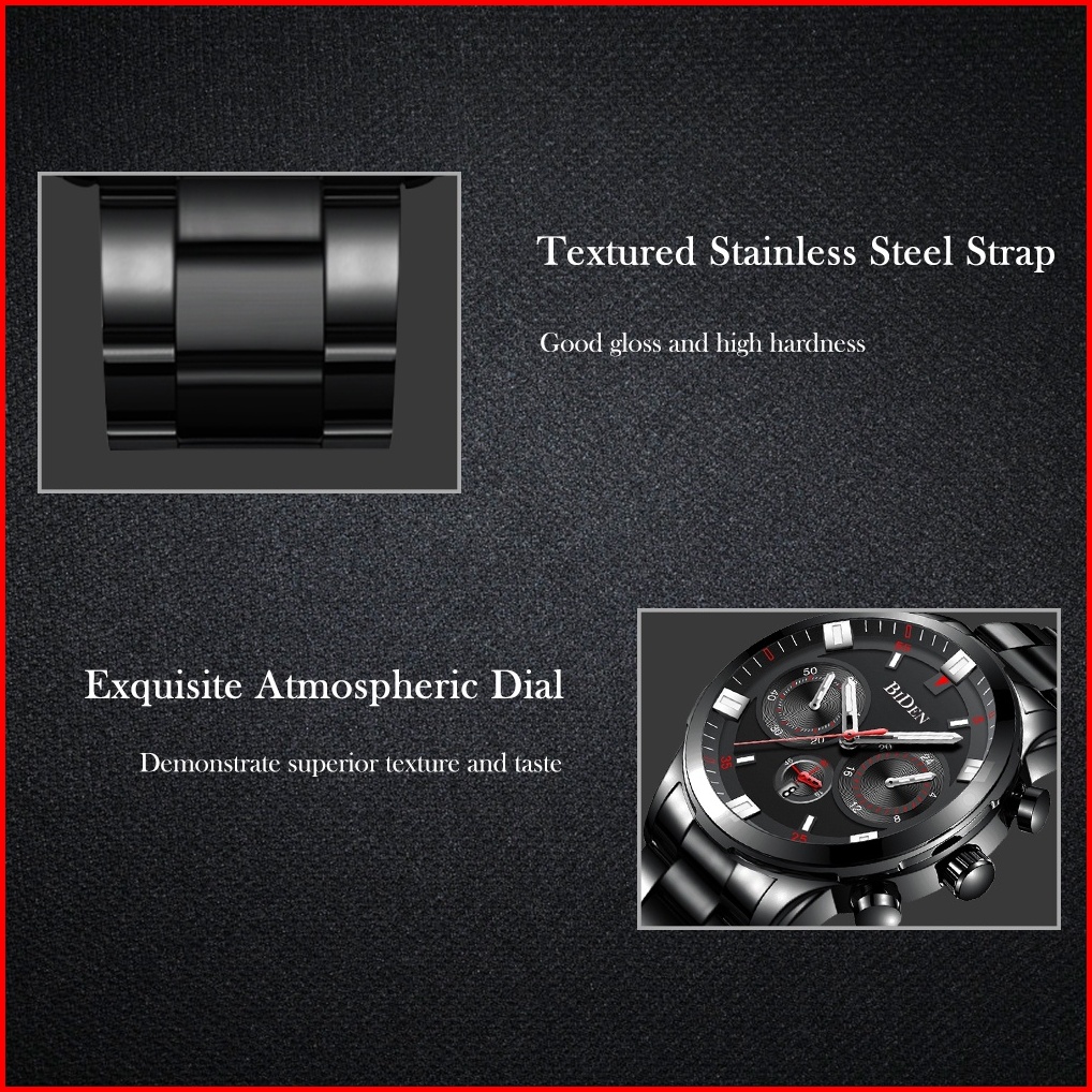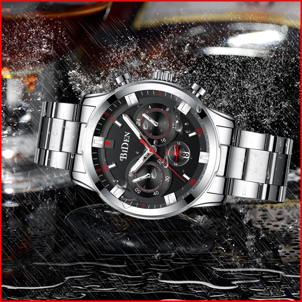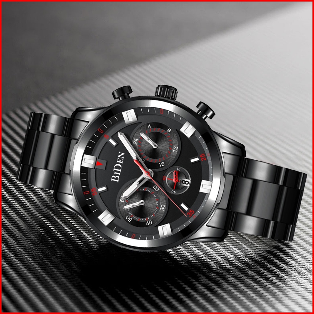 Biden Jam Tangan Pria Anti Air Original Aanalog Jam Tangan Cowok Tali Stainless Steel Kalender Santai Jam Pria