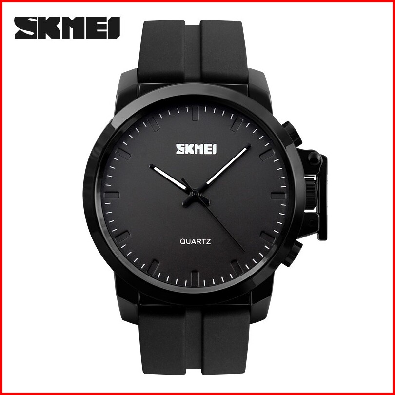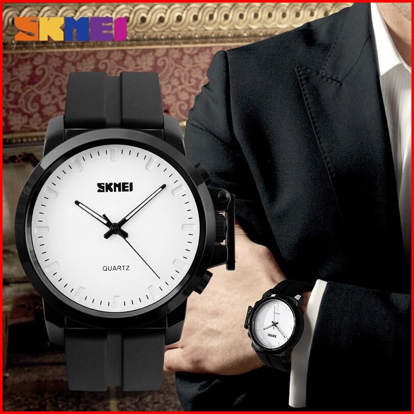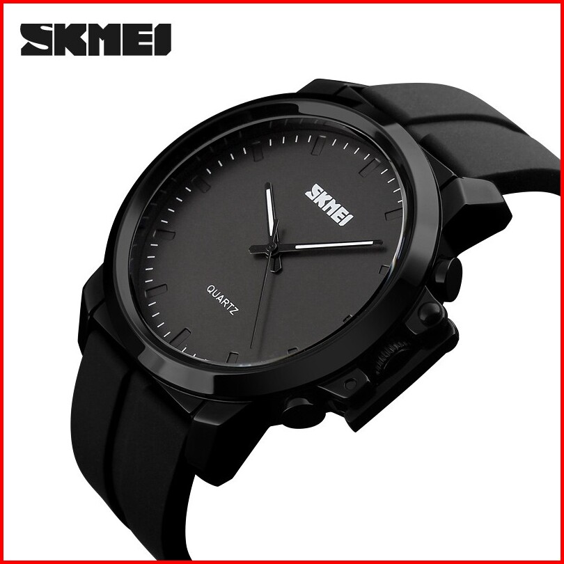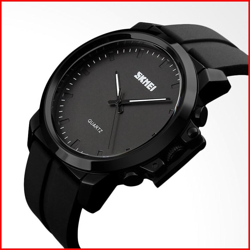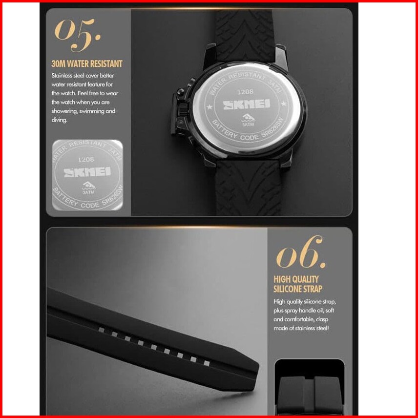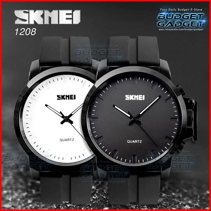 Jam Tangan Pria Analog Skmei 1208 Black Dail Silicone Band Water Resistant 30m