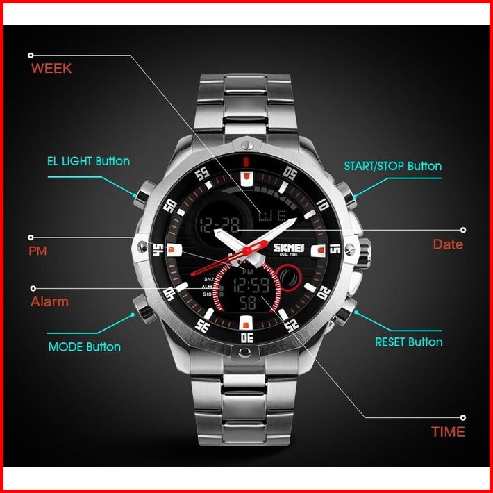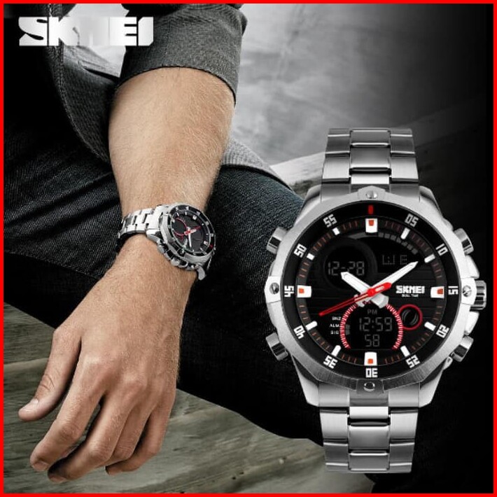 Jam Tangan Pria Digital Analog Skmei 1146 Silver Water Resistant 30m