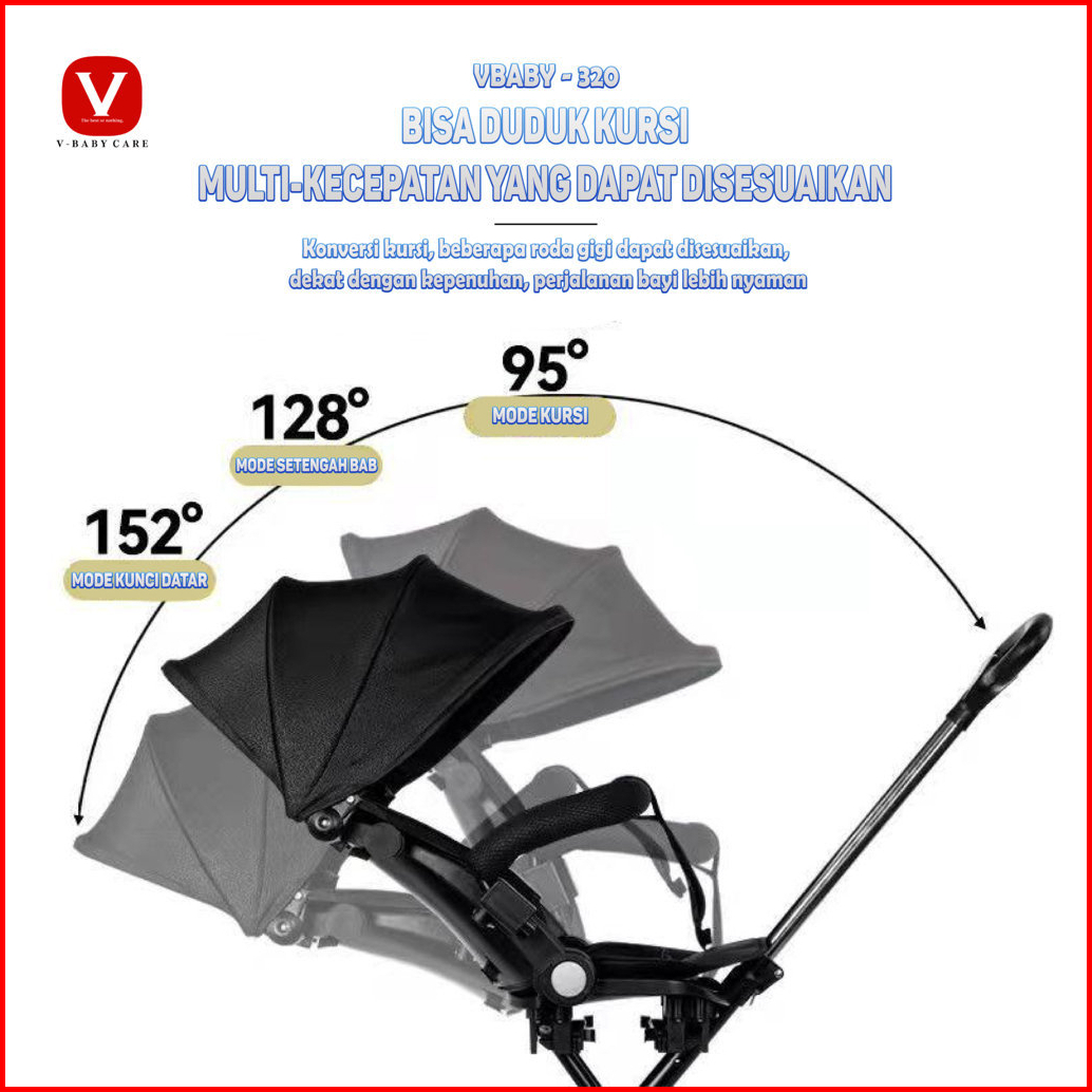 Vbaby Care Kereta Dorong Datar Berbaring Dapat Dilipat Dua Arah Stroller Vbaby-320