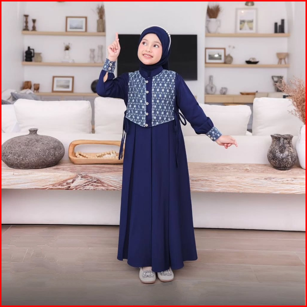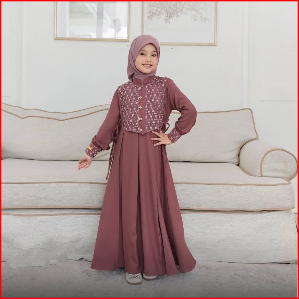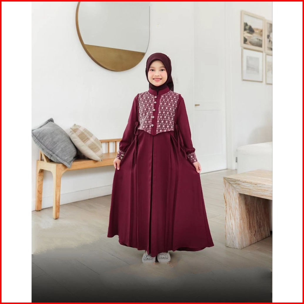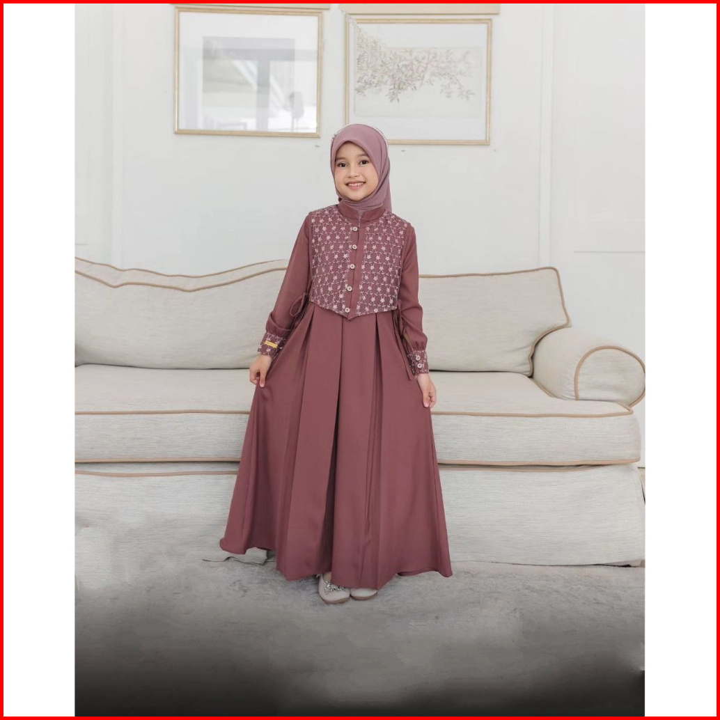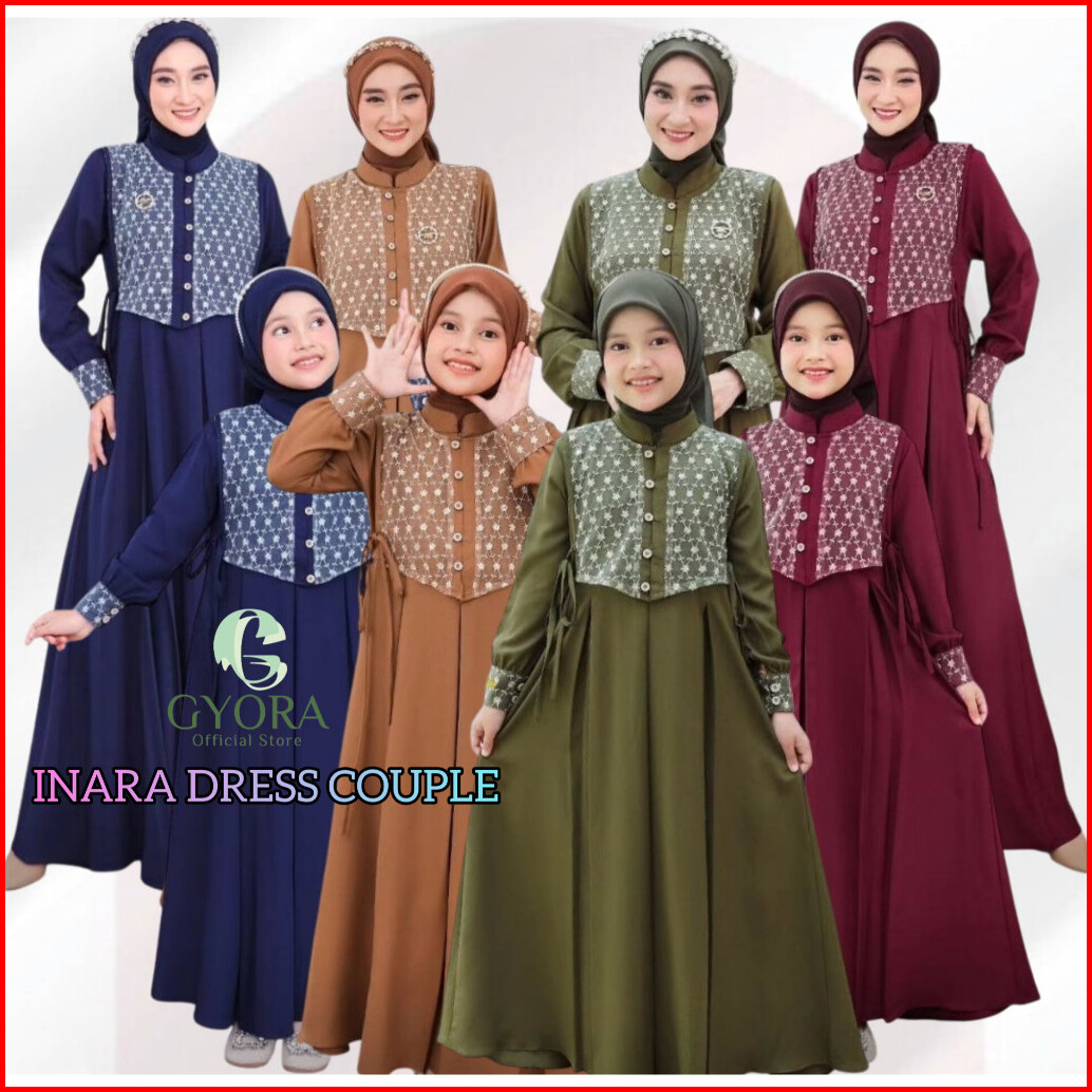 Gyora Gamis Couple Lebaran Ibu Dan Anak Gamis Muslim Wanita Terbaru Mix Brokat Inara Dress Couple Kids Baju Lebaran Keki