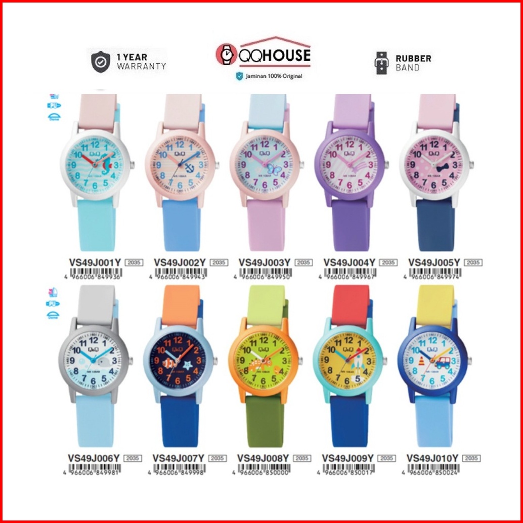 Q Q Qnq Qq Vs49 Vs49j Vs49j003 Vs49j003y Analog Kids Watch Rubber Band Jam Tangan Anak Tali Karet