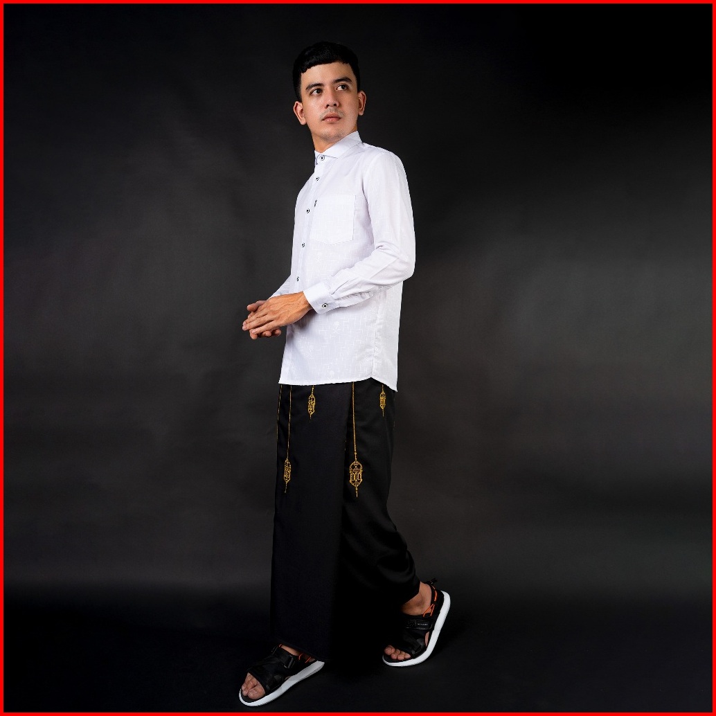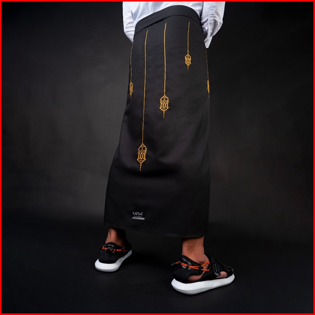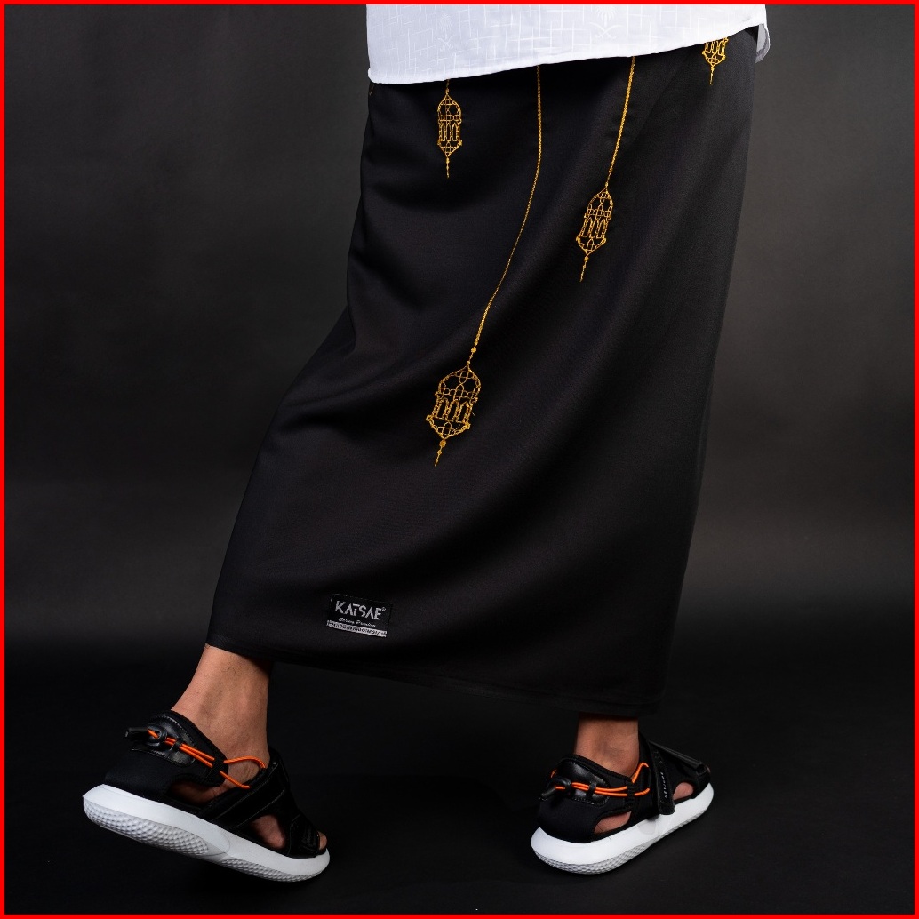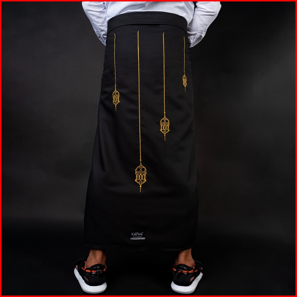 Katsae Sarung Bordir Motif Lentera Embroidery Timbul Sarung Pria Dewasa Sarung Sholat 100 Bordir Asli Warna Hitam Putih