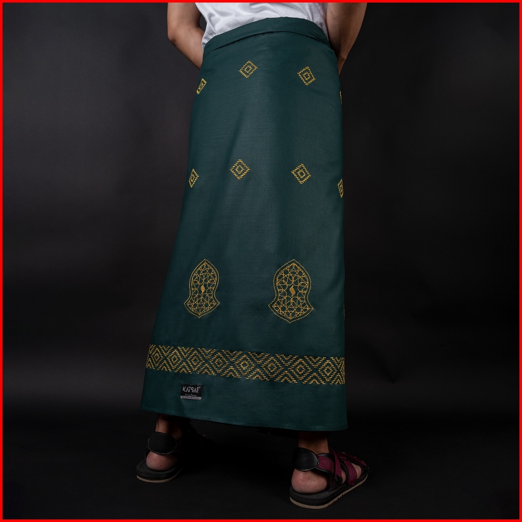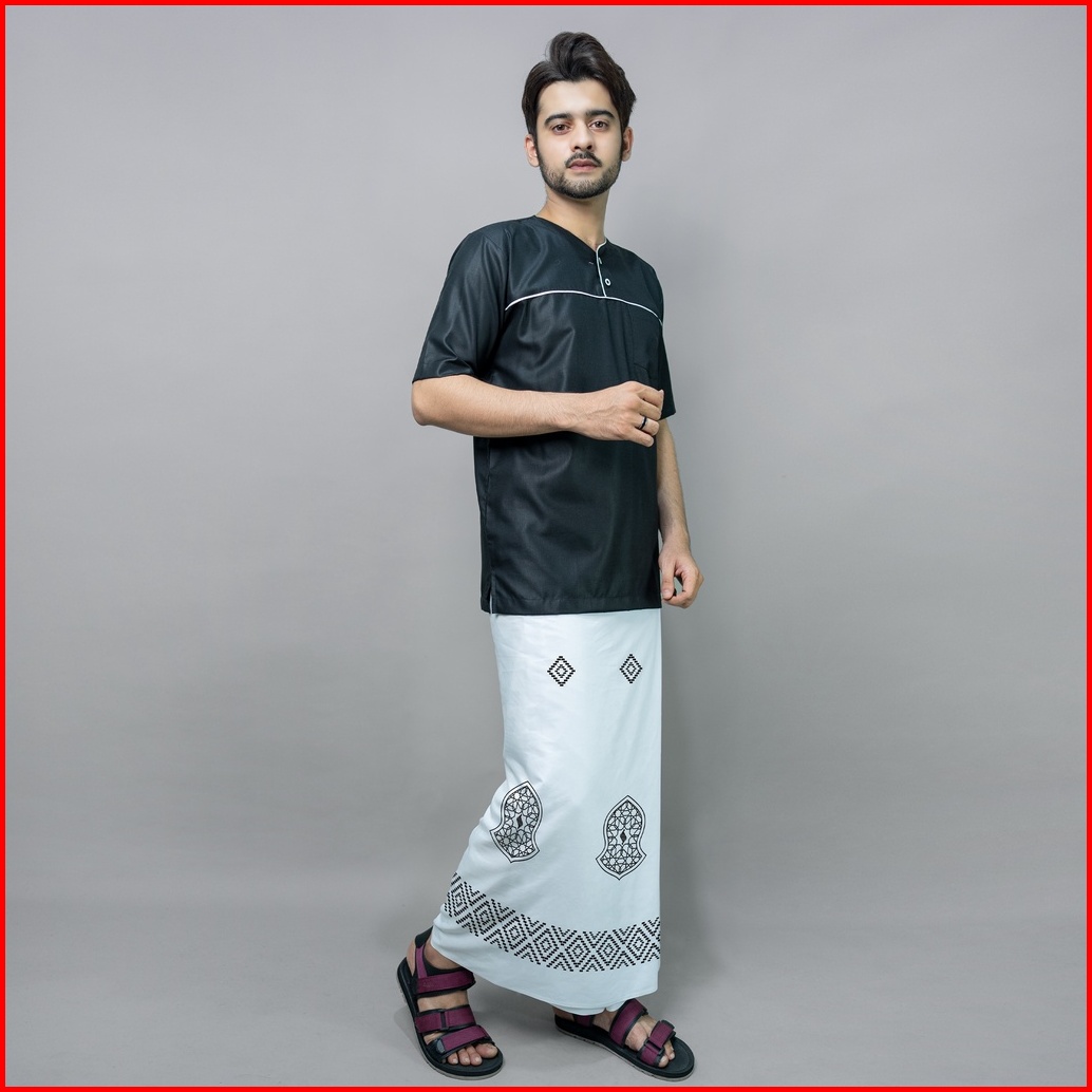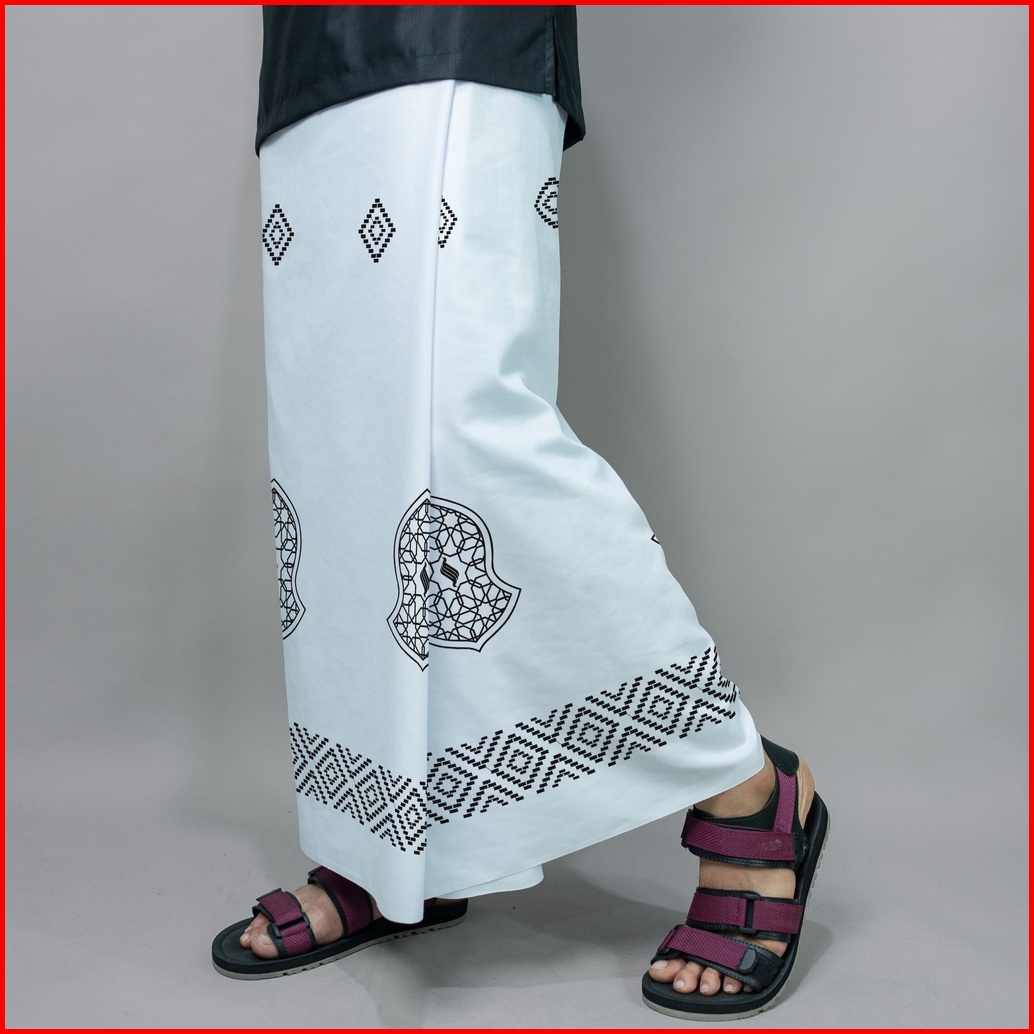 Katsae - Sarung Bordir Motif Terompah Bordir Timbul Sarung Pria Dewasa Warna Putih Sarung Sholat 100 Bordir