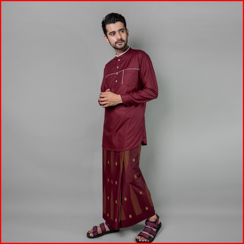 Katsae - Sarung Bordir Ammar Bordir Timbul Sarung Pria Dewasa Warna Marun Sarung Sholat 100 Bordir